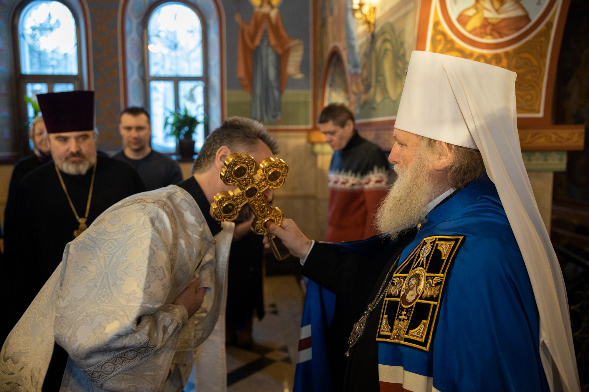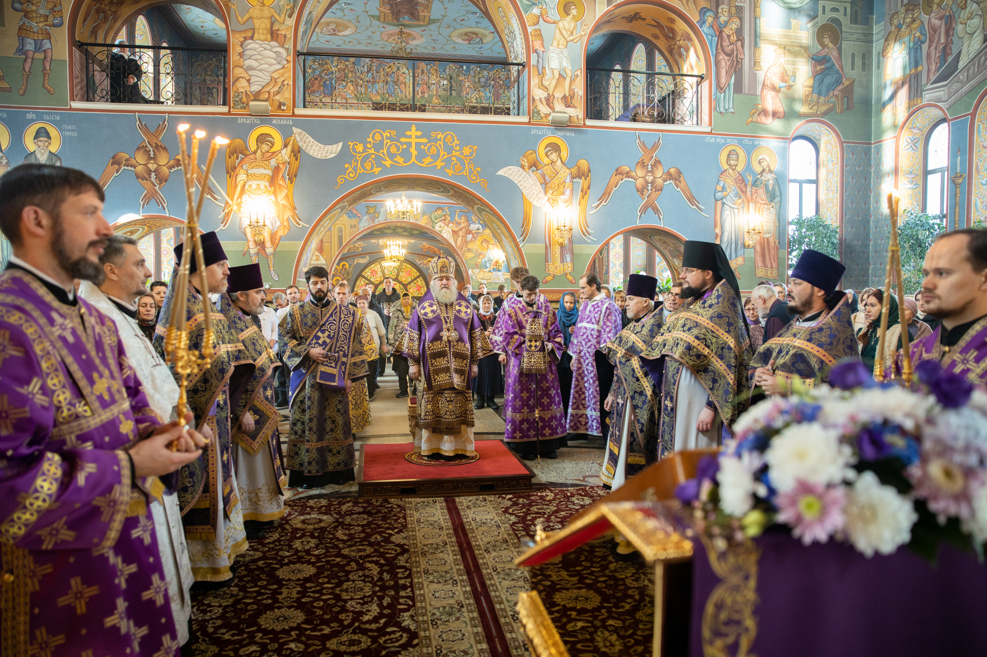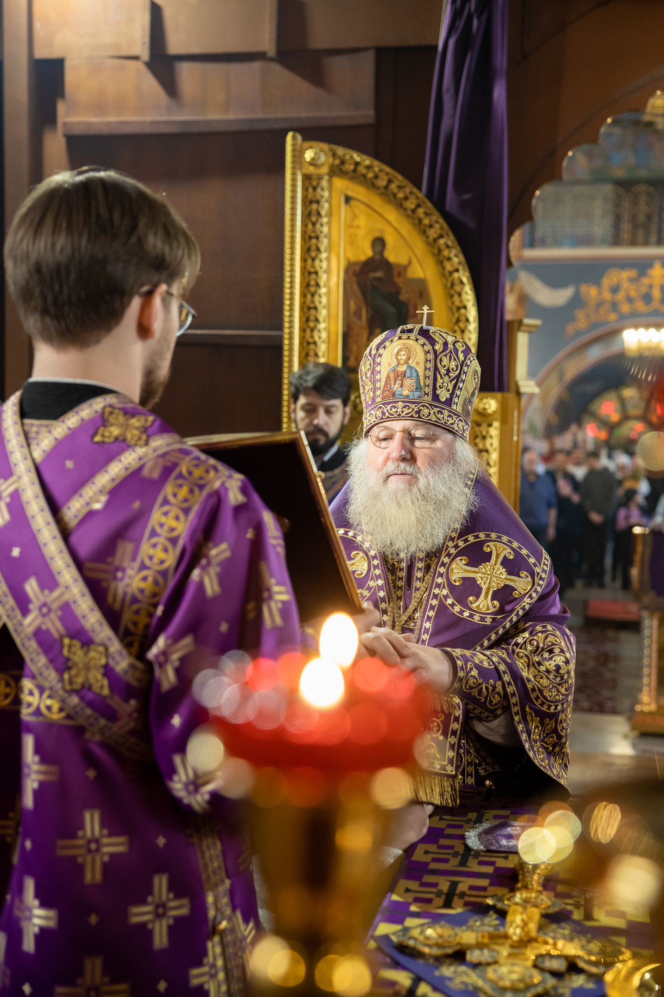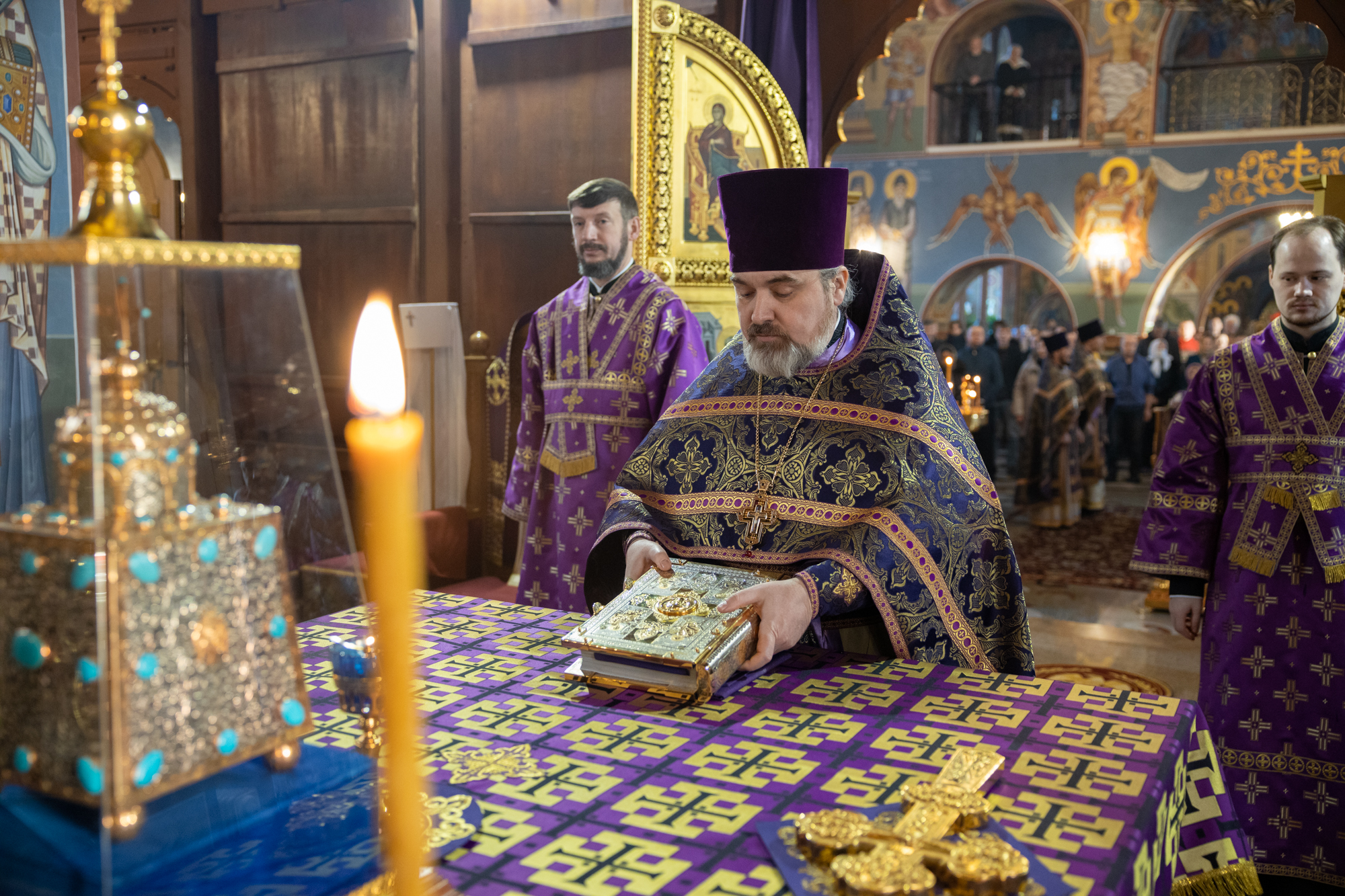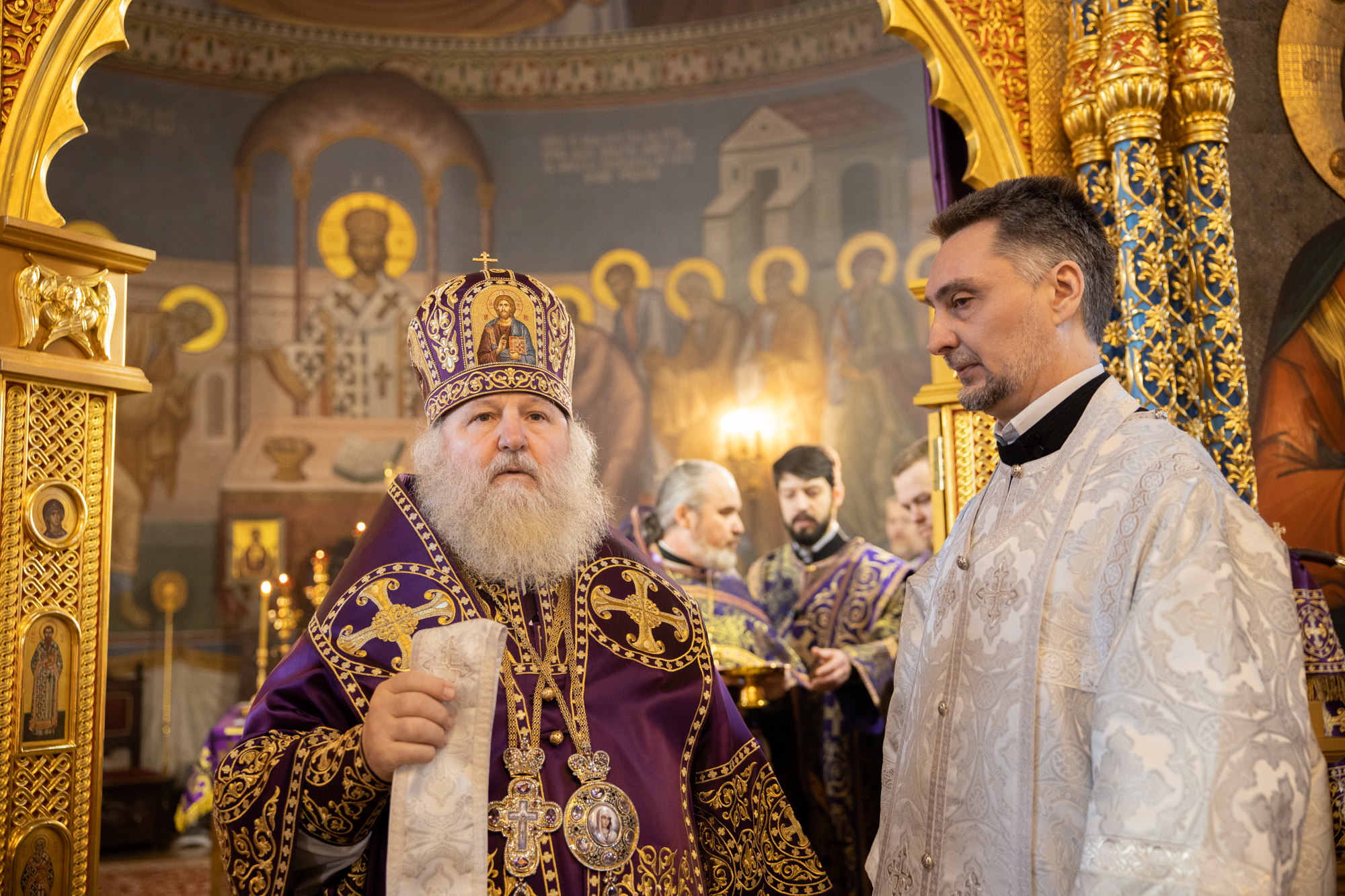 Его Высокопреосвященству сослужили: благочинный Сургутского городского благочиния протоиерей Антоний Исаков, иеромонах Никодим (Пирховский), духовенство храма. Диаконский чин возглавил диакон Даниил Матвеев.