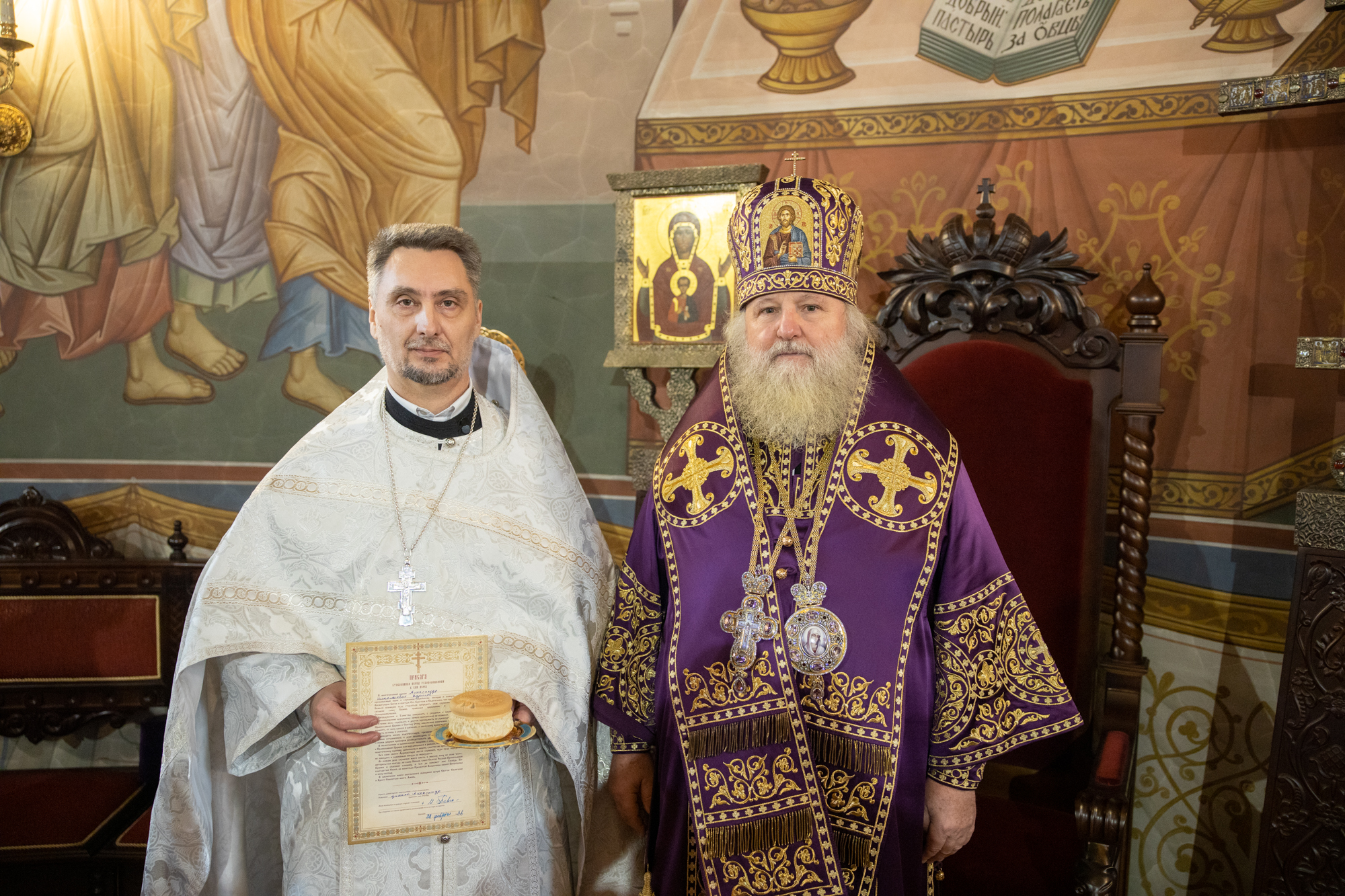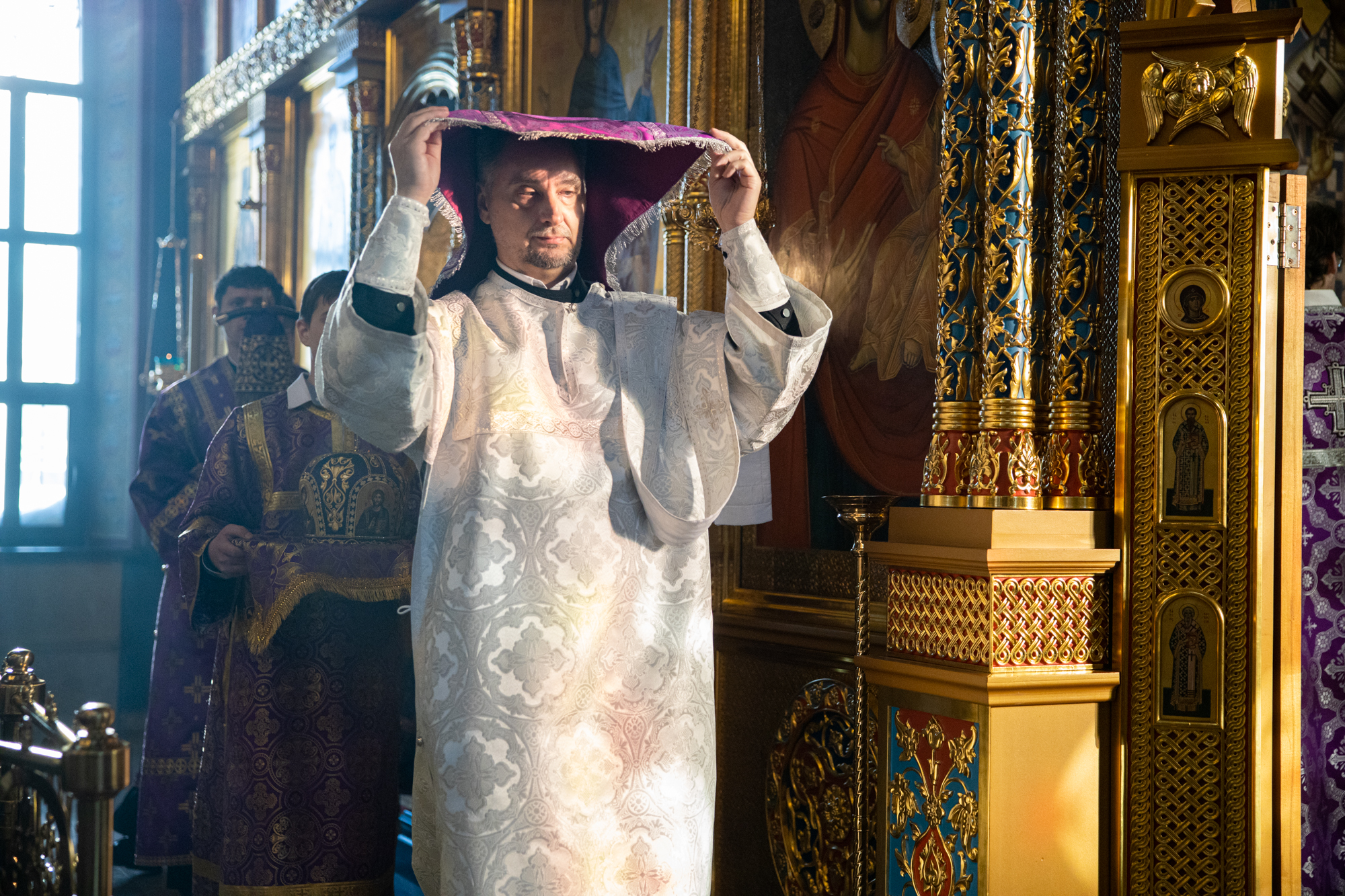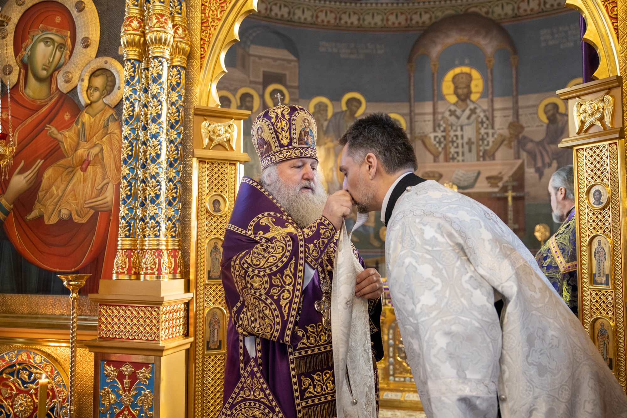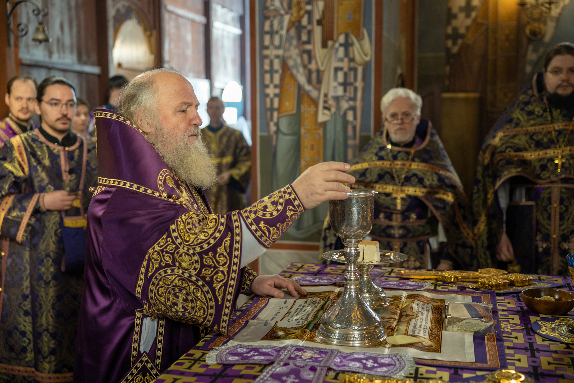 Его Высокопреосвященству сослужили: благочинный Сургутского городского благочиния протоиерей Антоний Исаков, иеромонах Никодим (Пирховский), духовенство храма. Диаконский чин возглавил диакон Даниил Матвеев.