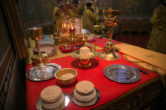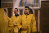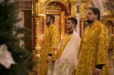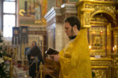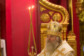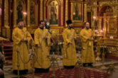 Его Высокопреосвященству сослужили: секретарь управляющего епархией иеромонах Антоний Кирпичев, ключарь собора иерей Александр Петюр, духовенство собора.