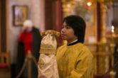 На сугубой ектении были вознесены молитвенные прошения в связи с угрозой распространения коронавирусной инфекции, а также прошение о врачах: «Призри Владыко Человеколюбие на жертвенный подвиг врачей наших, посли им здравие непоколебимое, силу и крепость духа, мудрость к совершению трудов во благо народа нашего и сотвори чрез них исцеление страждущим рабом Твоим, прилежно молим Ти ся скоро услыши и помилуй».
