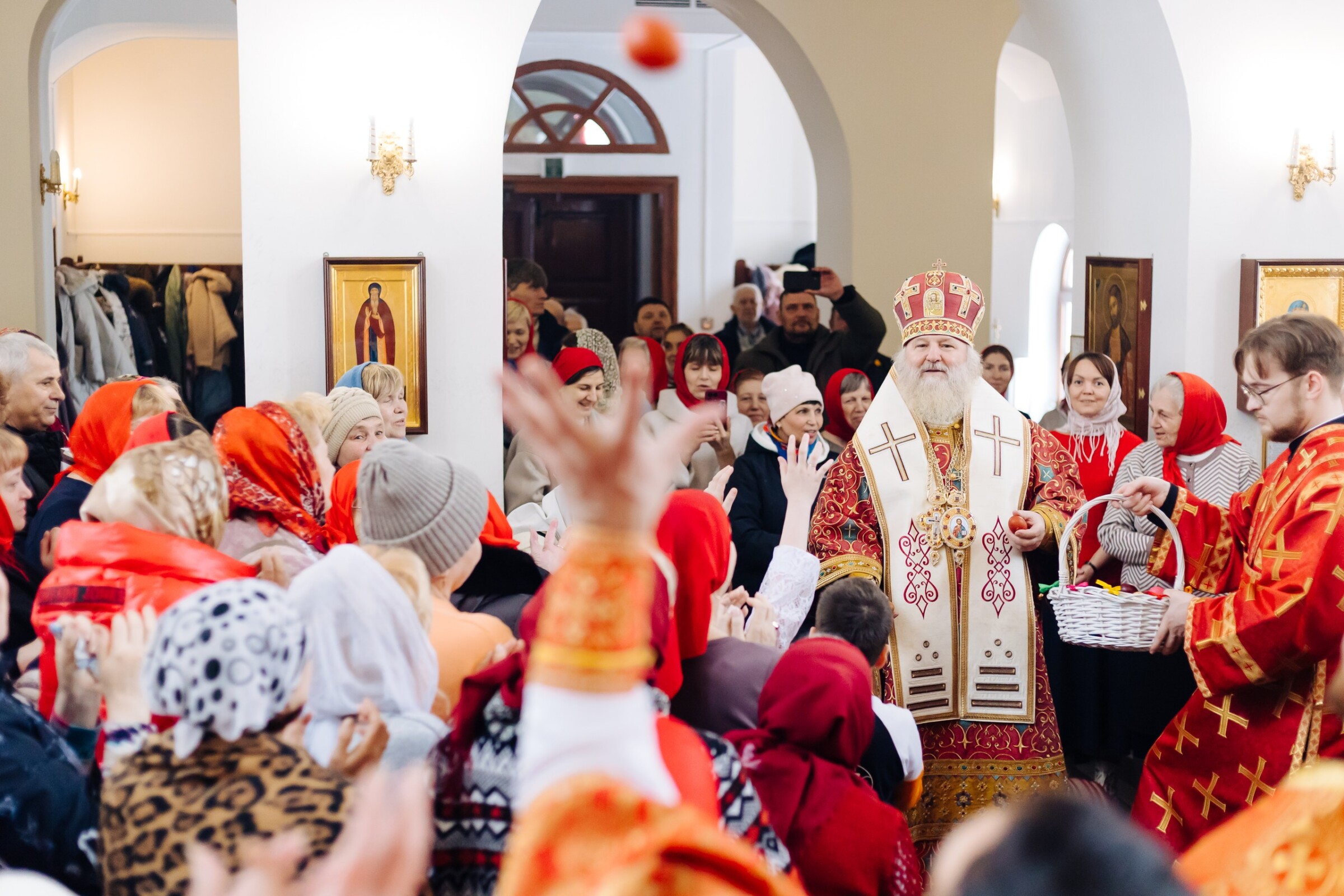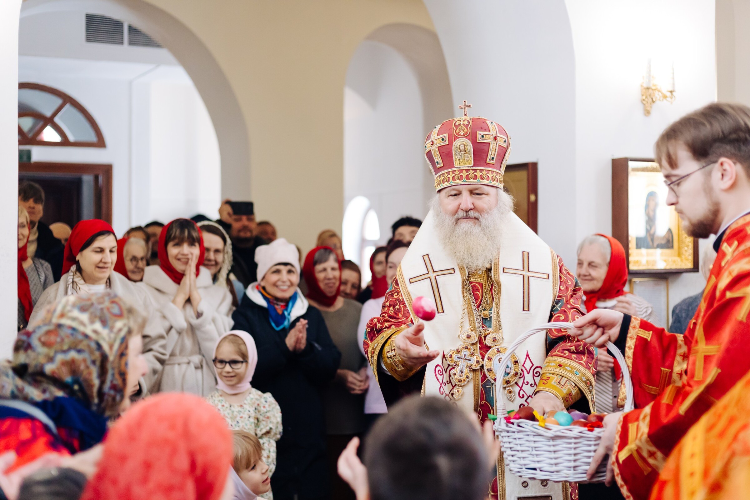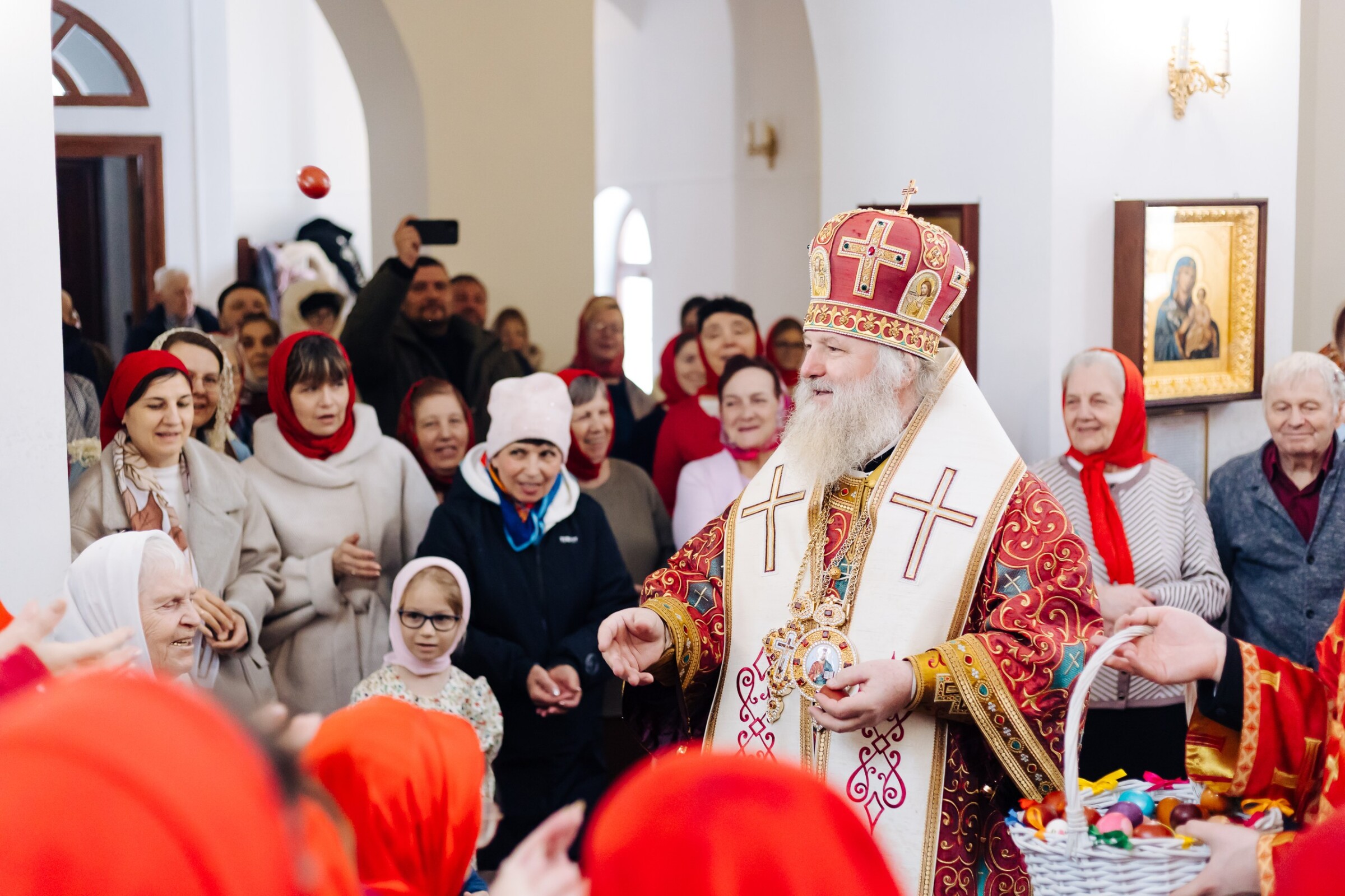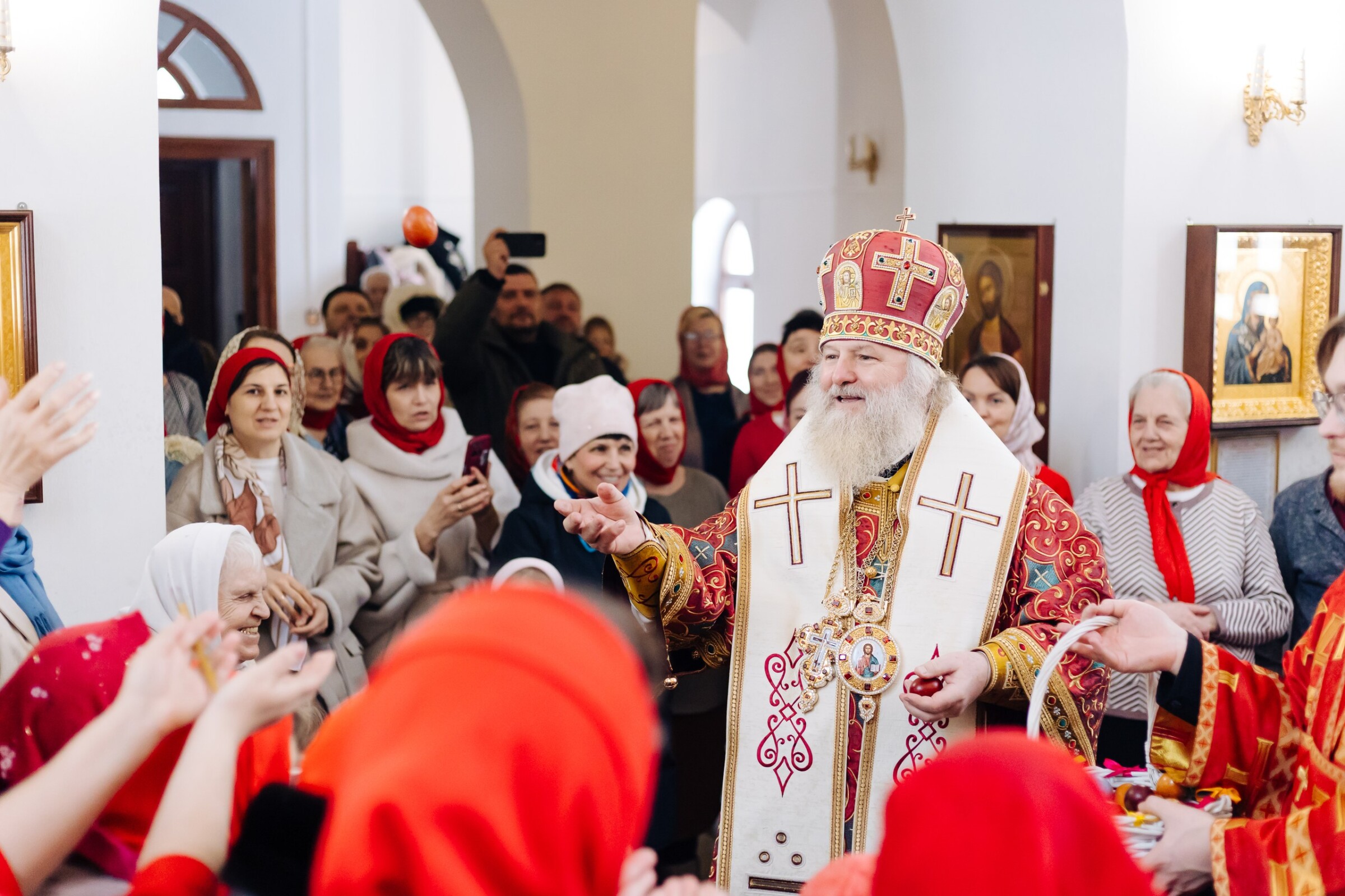 В завершение богослужения состоялось славление Светлому Христову Воскресению, после чего владыка раздробил Святой Артос – пасхальный освященный хлеб и благословил его для вкушения верующим, «яко да вси, вкушающии от него, телеснаго и душевнаго благословения и здравия сподобятся»