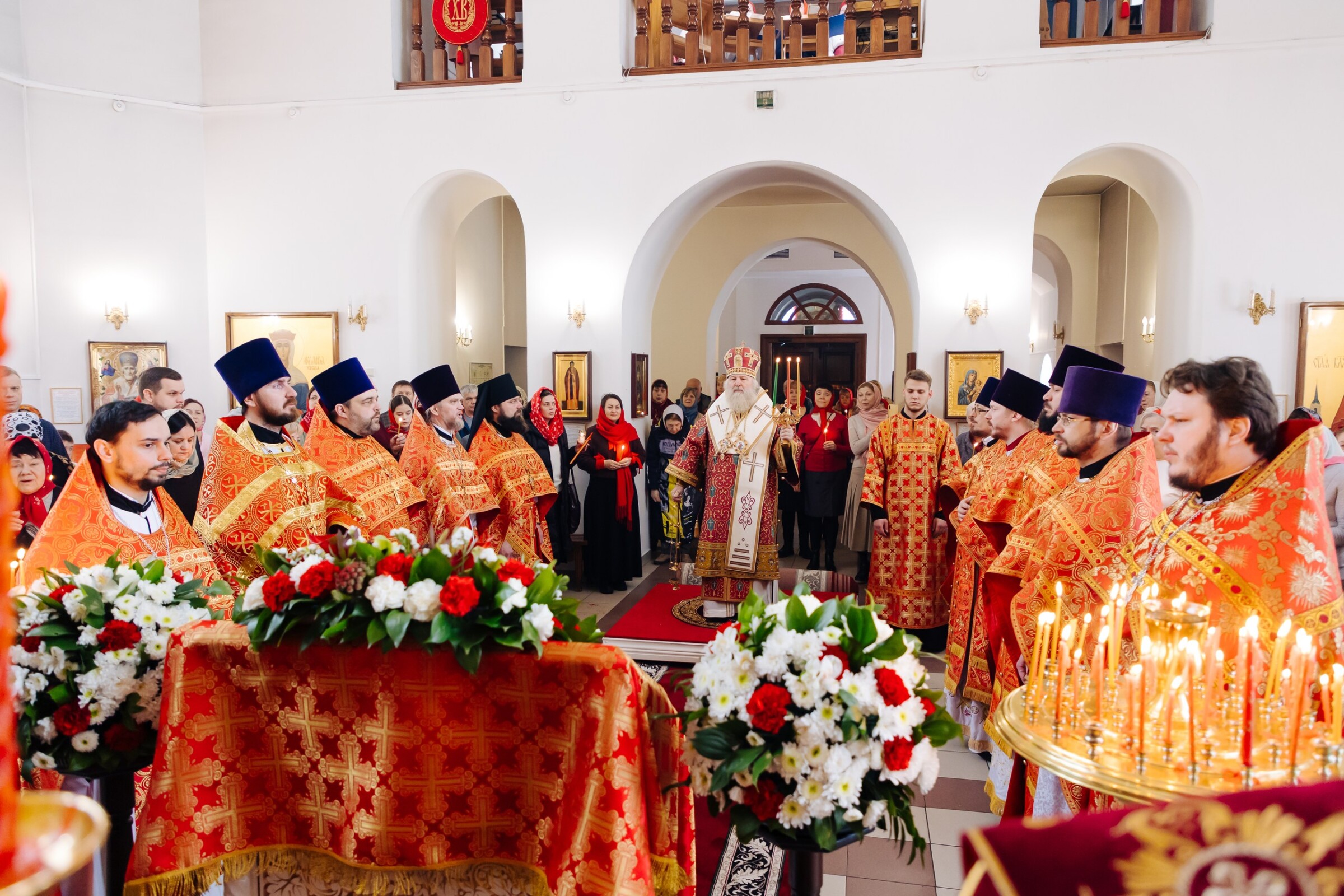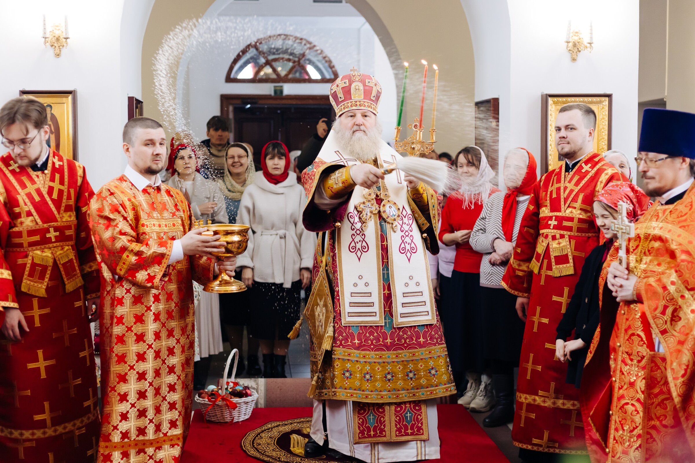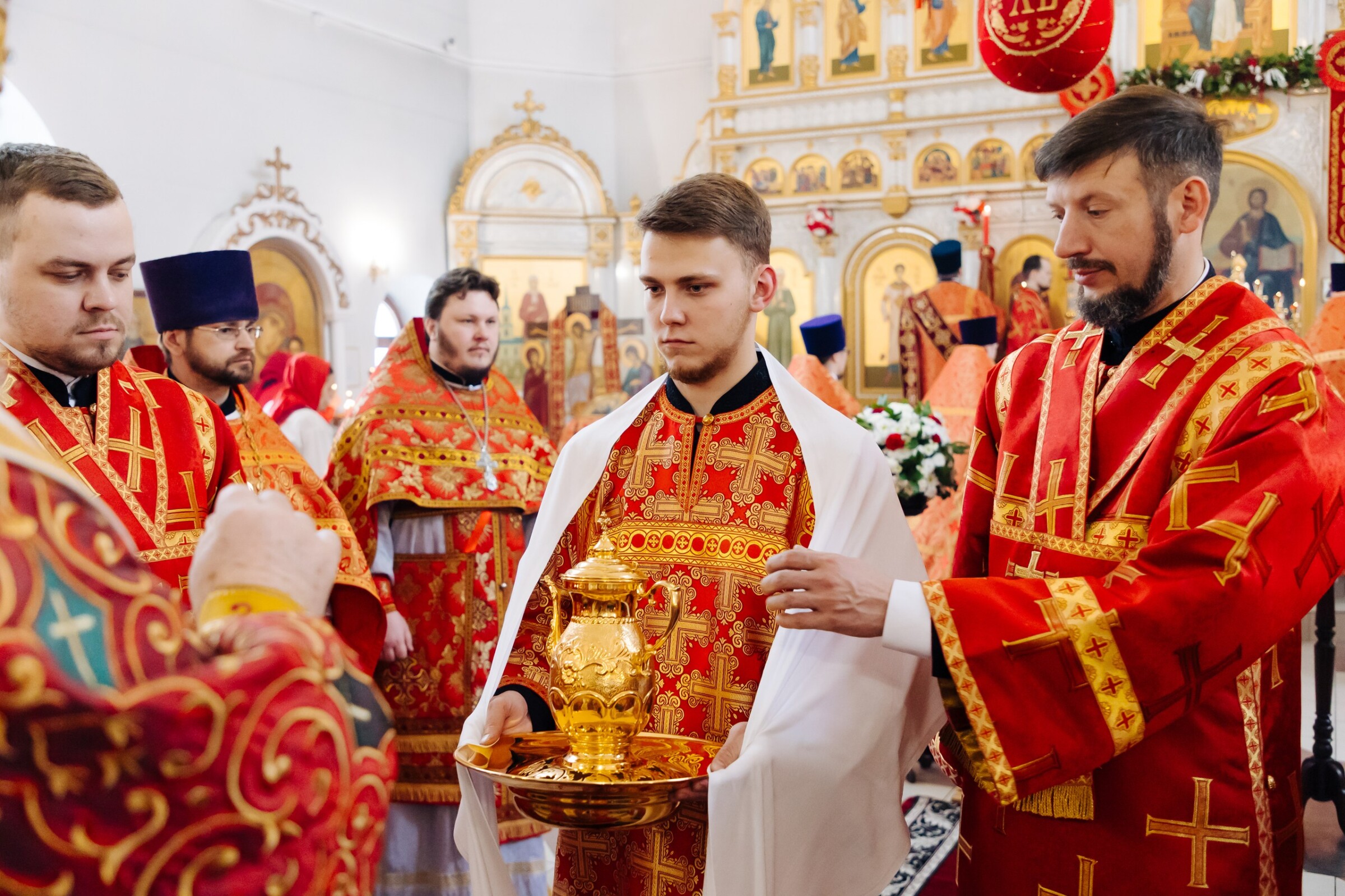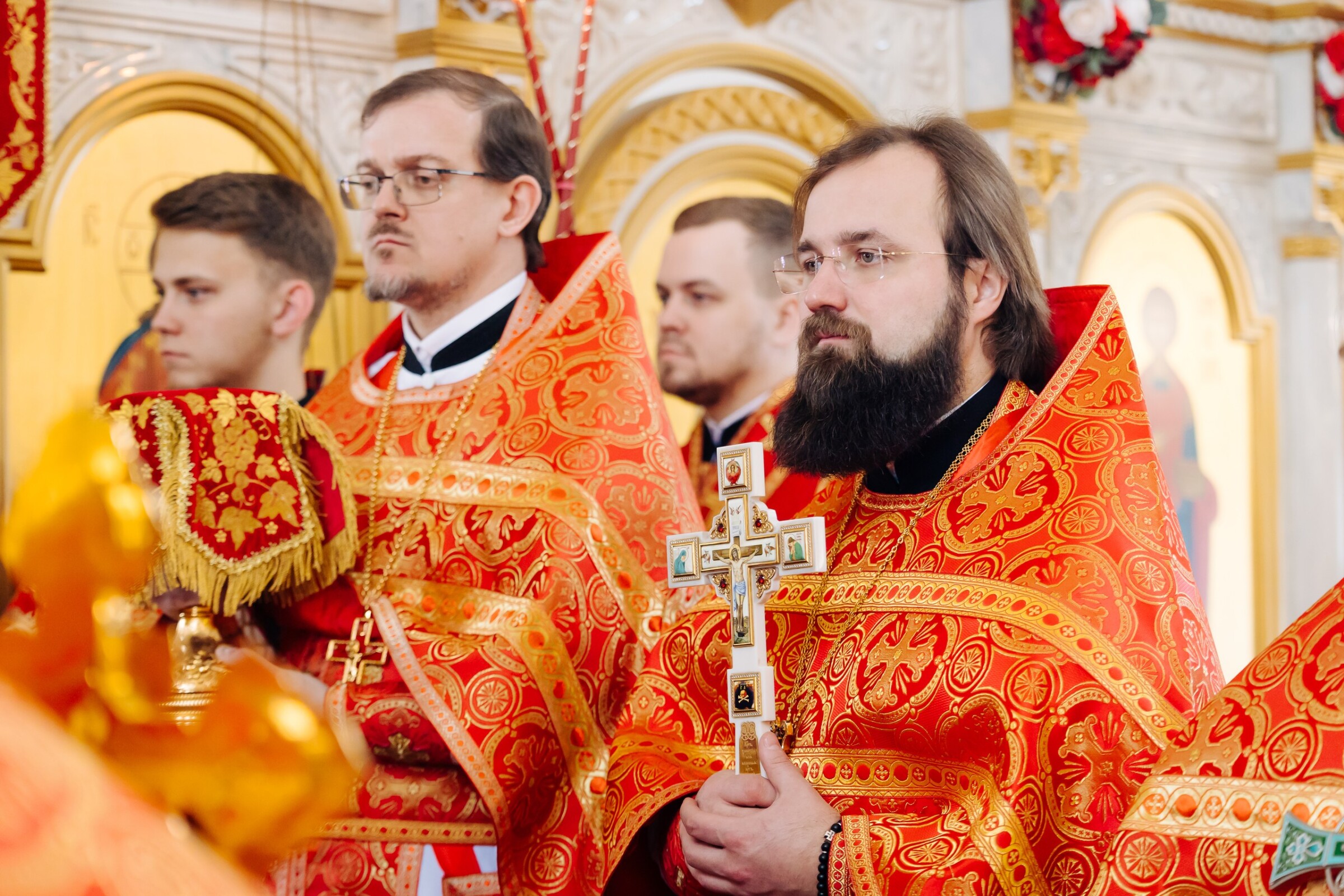 Его Высокопреосвященству сослужили: благочинный Нижневартовского городского благочиния протоиерей Сергий Шевченко, благочинный Нижневартовского районного благочиния иерей Олег Гордеев, секретарь Ханты-Мансийской епархии игумен Антоний (Кирпичев), духовенство Нижневартовского районного благочиния. Диаконский чин возглавил протодиакон Даниил Матвеев.