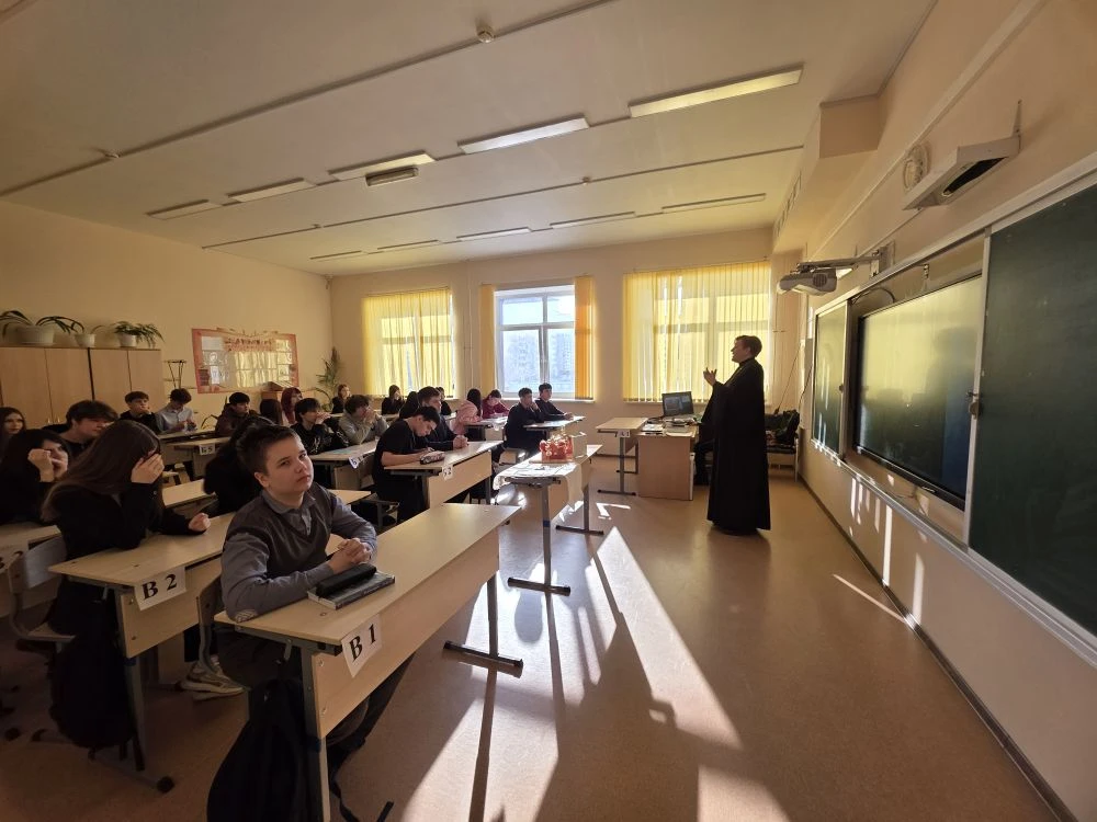 В средней общеобразовательной школе №31 города Сургута состоялись занятия в рамках масштабного просветительского проекта «Семья как храм». Два урока в девятых классах провел священник Иоанн Казанцев, заместитель директора по духовно-нравственному воспитанию Сургутской православной гимназии, клирик храма в честь святителя Николая Чудотворца.
