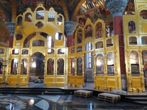 Заканчивается роспись алтарной части собора, идут подготовительные работы для установки центрального паникадила. Завершена укладка мозаичного пола, продолжается отделка внутренних помещений и парковки. Полным ходом идёт благоустройство примыкающей к зданию храма территории.