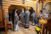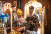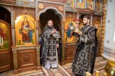 Его Высокопреосвященству сослужили: наместник монастыря игумен Антоний (Кирпичев), братия обители в священном сане, диакон Даниил Матвеев.