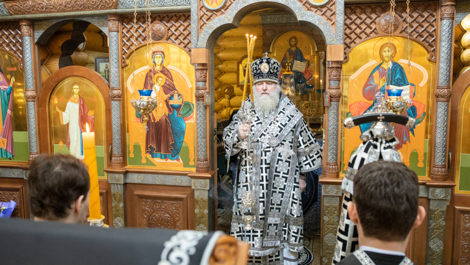 Его Высокопреосвященству сослужили: благочинный Ханты-Мансийского благочиния иерей Димитрий Губанищев, и.о. настоятеля монастыря иеромонах Иов (Бернацкий), братия обители в священном сане, диакон Даниил Матвеев.