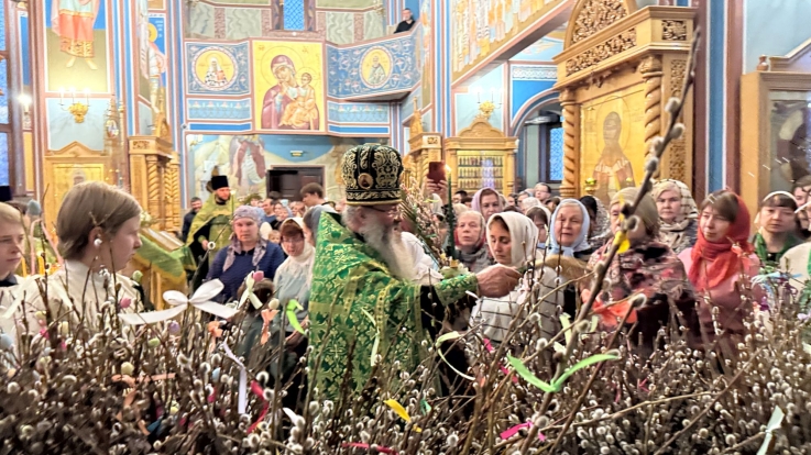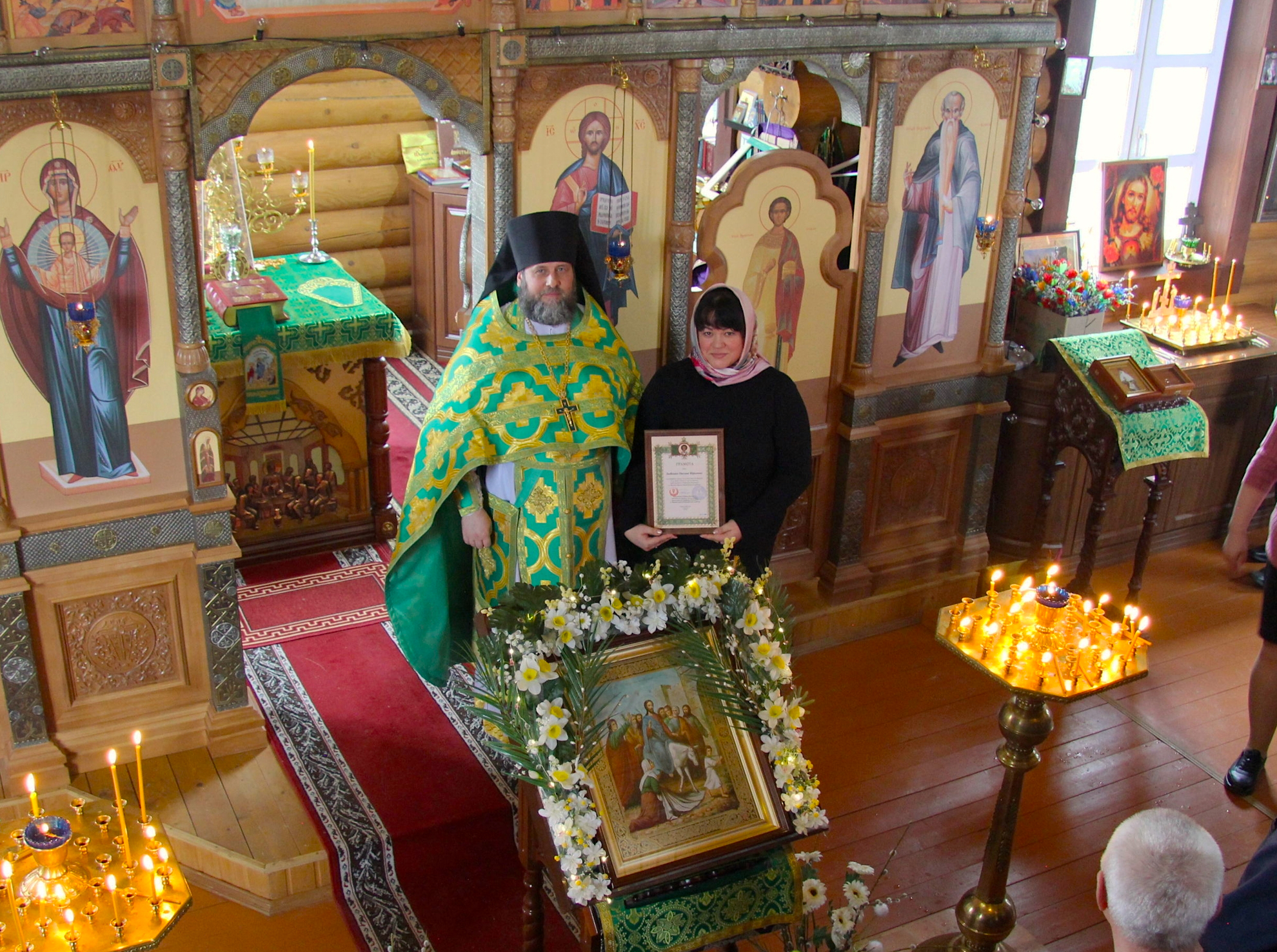 Ранее в этот день в храме Оксане Юрьевне была вручена приходская Грамота. Она возглавляет школьное объединение «Кудесники», которое на протяжении последних лет изготавливает букетики вербы для последующей раздачи престарелым и инвалидам дома-интерната «Уют».