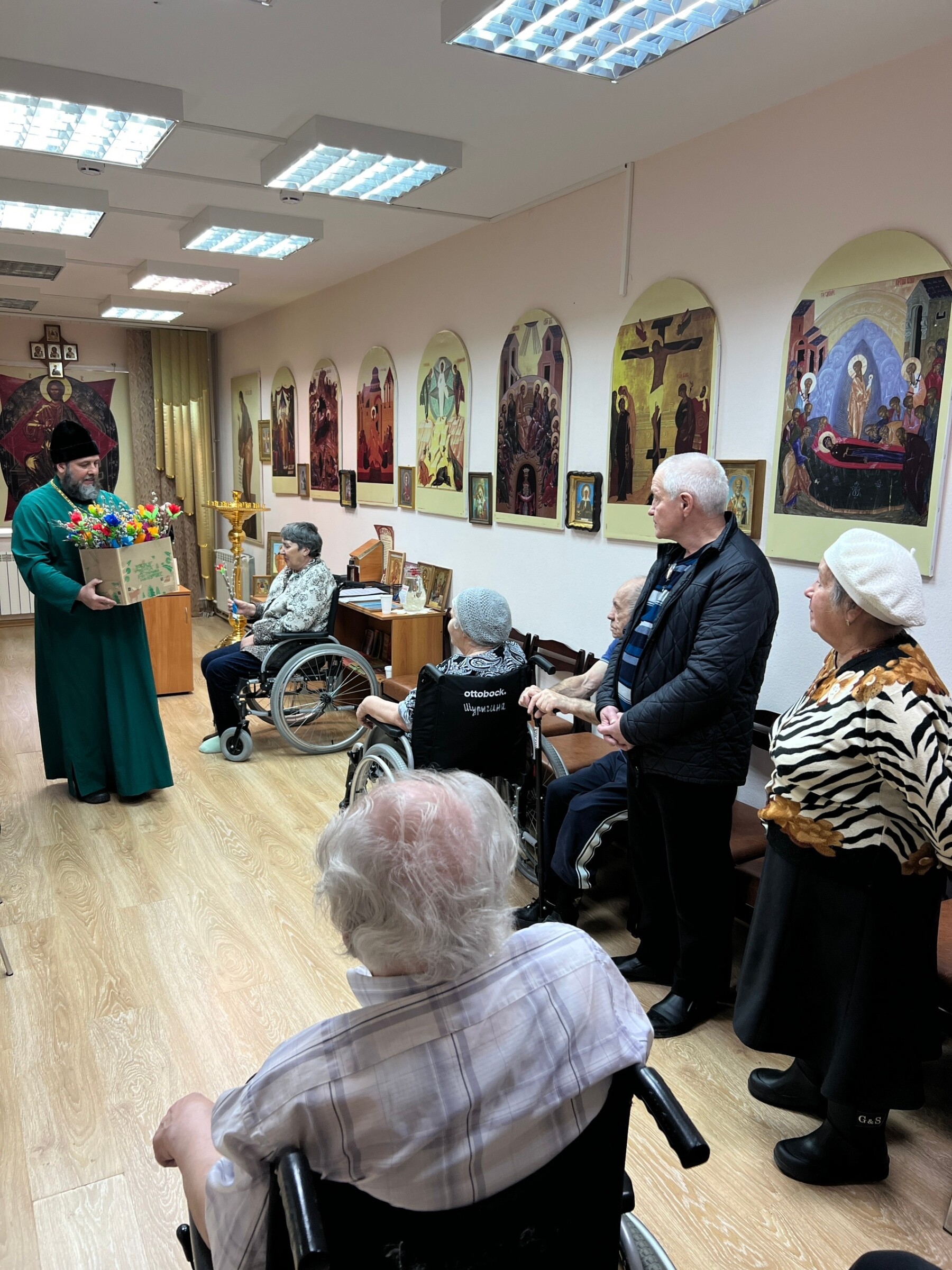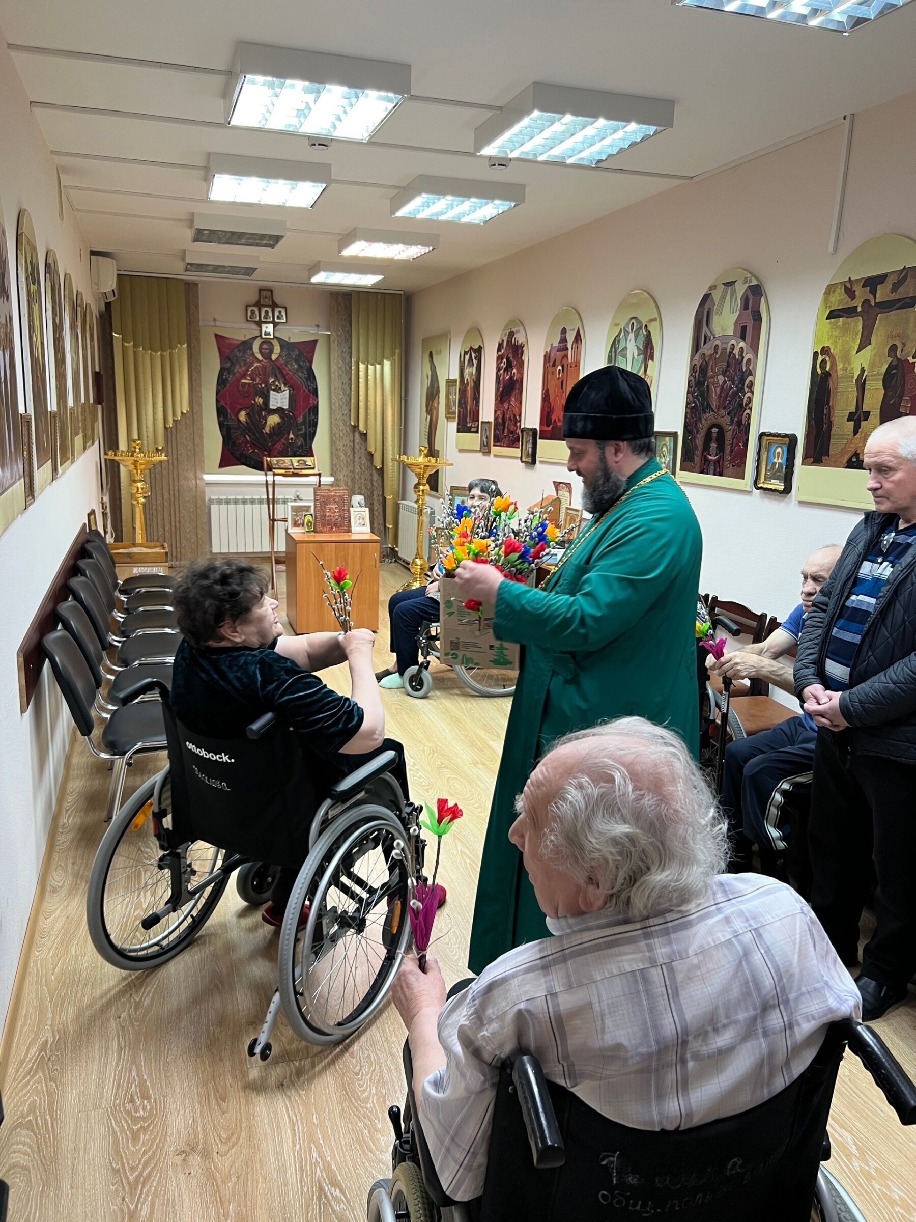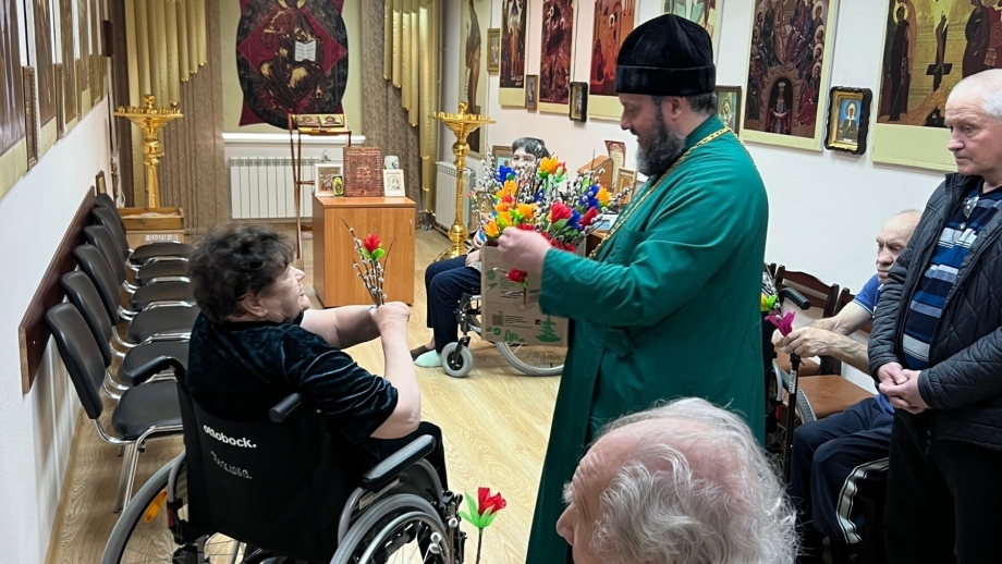 5 апреля 2026 года в праздник Входа Господня в Иерусалим по окончании богослужения настоятель храма в честь святого преподобного Евфимия Великого д. Шапша Ханты-Мансийского района иеромонах Роман (Киселев) и прихожане посетили Дом-интернат для инвалидов и престарелых «Уют» (Отделение-интернат малой вместимости для граждан пожилого возраста и инвалидов).