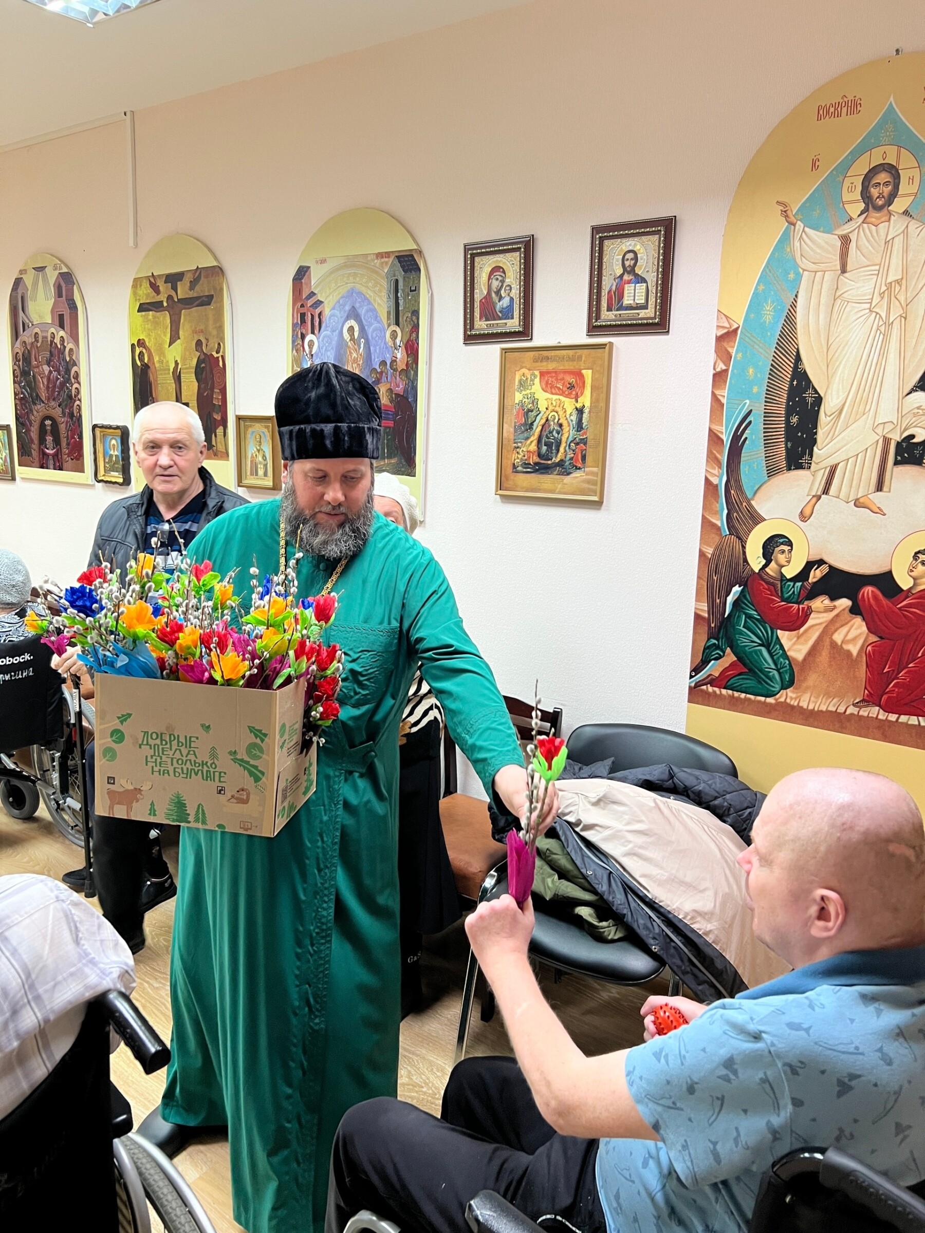 В Вербное воскресенье священник в сопровождении прихожан посетил Дом-интернат «Уют» в д. Шапша