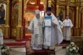 30 мая 2014 г. епископ Павел совершил Божественную Литургию в Воскресенском кафедральном соборе. Торжественным событием трехлетнего юбилея со дня образования епархии стало прибытие мощей святой Матроны Московской. Владыке Павлу сослужило все духовенство епархии. Соборная молитва архипастыря с клириками стала доброй традицией праздника образования Ханты-Мансийский епархии. В девять часов утра мощи были доставлены в кафедральный собор. За ревностное служение Церкви Христовой и пастырское душепопечительство настоятель храма Архангела Михаил п. Приполярный иерей Артемий Куринной был удостоен права ношения набедренника. Ряд клириков епархии были награждены благодарственными грамотами. После богослужения владыка поздравил священство и прихожан с юбилеем епархии. Все собравшиеся смогли приложиться к святым мощам.