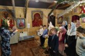 Далее дети прошли в храм и с педагогом по хоровому пению прорепетировали поздравительные композиции.