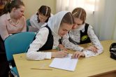 Воспитанники воскресной школы познакомились с жизнью и подвигами святых братьев, читали стихи о святых. Расшифровывали послание, включенное в порядок букв в славянской азбуке. В игре ловили слова, а заодно представили, как это быть без письменности. В завершении мероприятия каждый смог ответить на вопросы тематической викторины. Никто не остался безучастным, у каждого воспитанника за год накопился весомый багаж знаний в вероучительных дисциплинах.