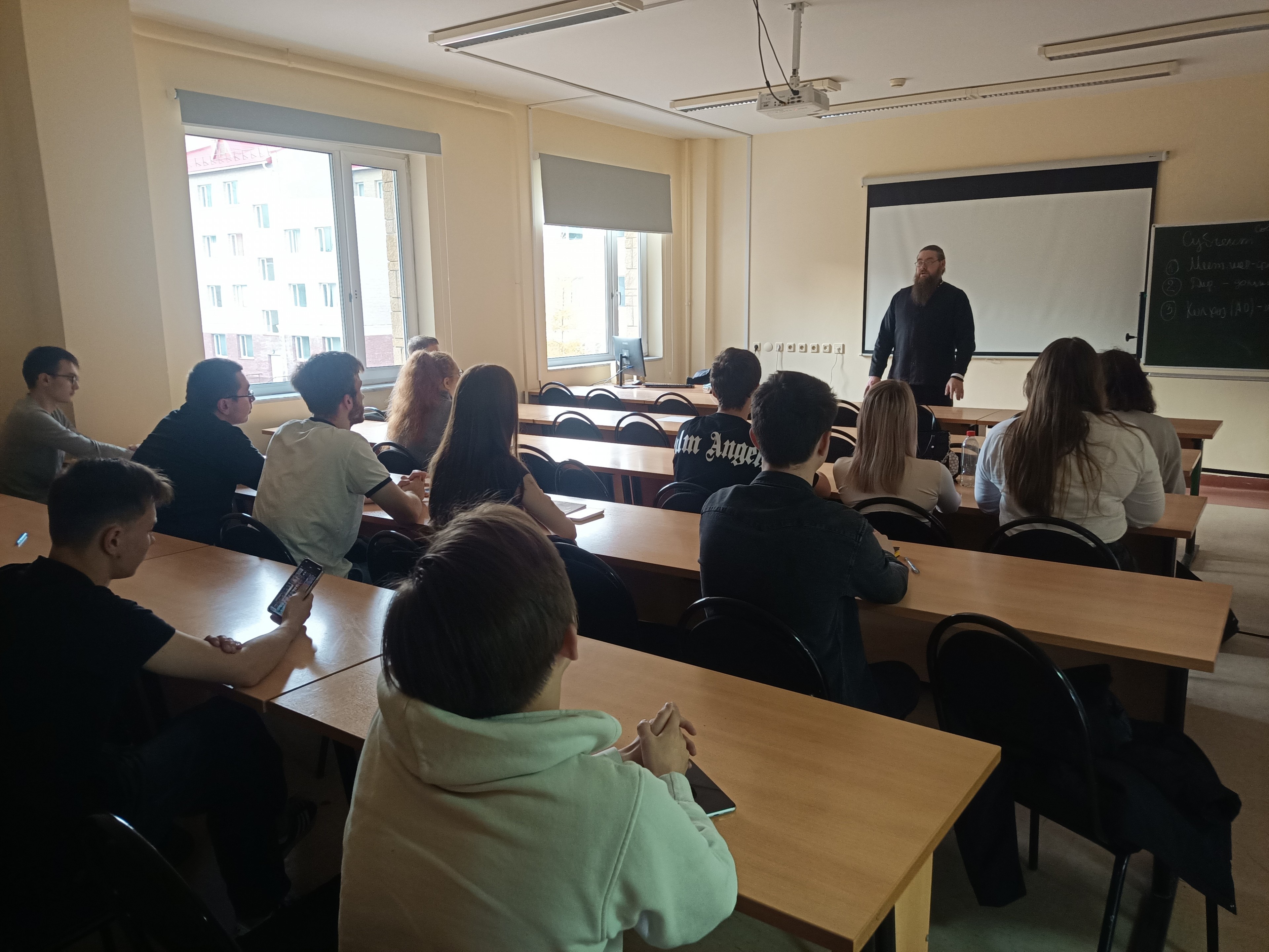 6 октября 2023г. в Высшей экологической школе Югорского государственного университета прошла встреча руководителя Духовно-просветительского центра г. Ханты-Мансийска священника Вячеслава Фомин со студентами.