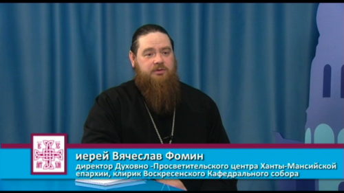 В студии Ханты-Мансийской митрополии — директор Духовно -Просветительского центра Ханты-Мансийской епархии, клирик Воскресенского Кафедрального собора иерей Вячеслав Фомин.