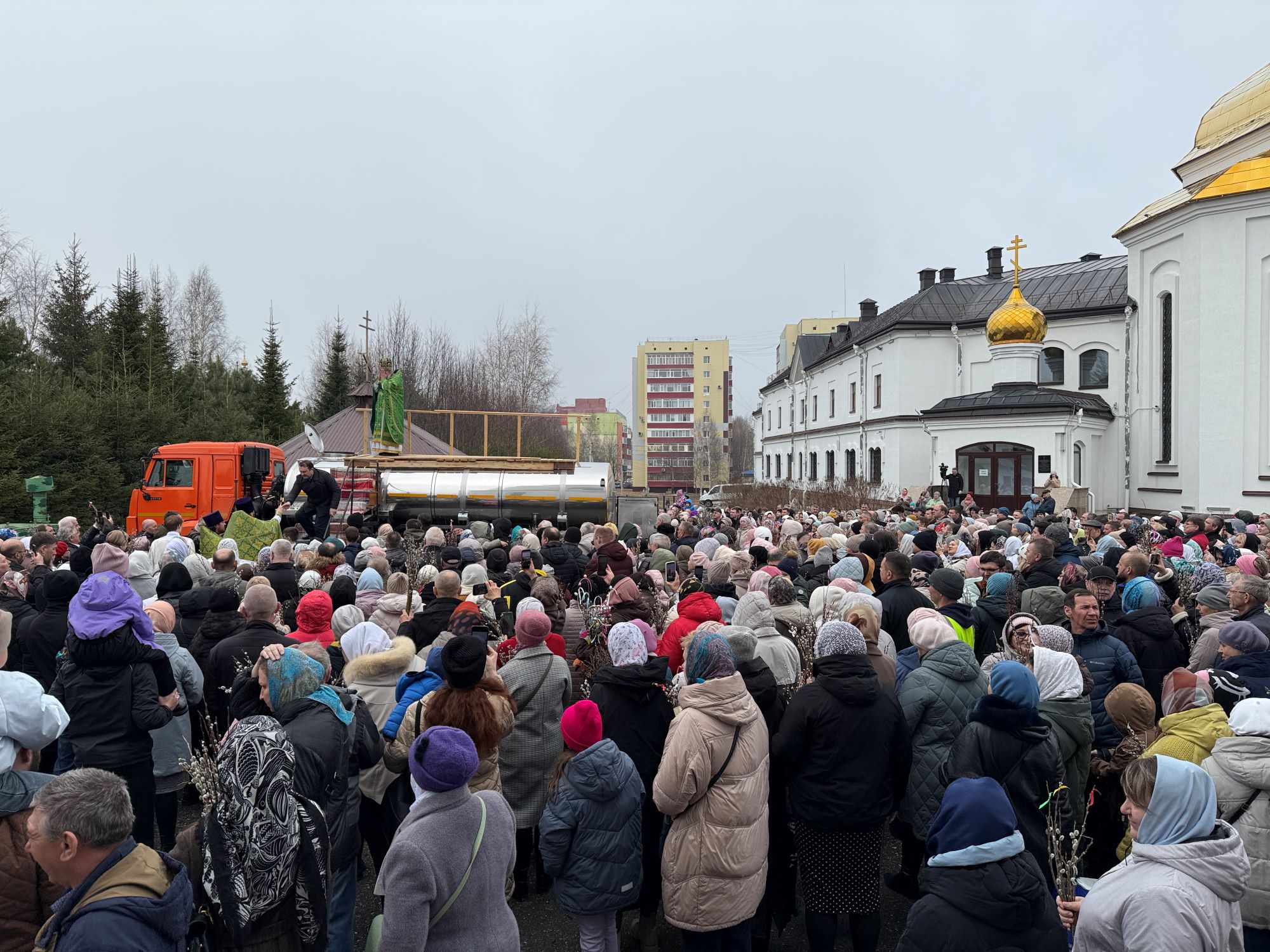 В этот день традиционно горожане приходят в храм, чтобы поучаствовать в торжестве встречи Христа и освятить вербы(вайи). Храм не вмещал всех желающих, поэтому часть людей ожидали освящения на улице. Настоятель храма Святого Духа, протоиерей Николай, щедро освятил все вербы и молящихся, окропив их святой водой. Несмотря на большое количество верующих, все мероприятия прошли организованно и спокойно.