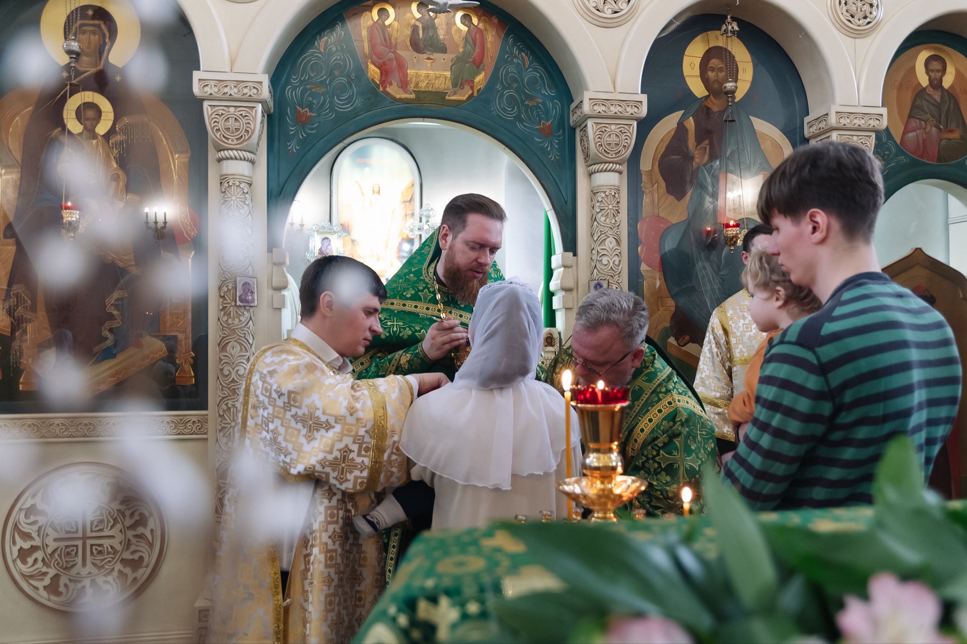 За Всенощным Бдением молились воспитанники Нефтеюганской православной гимназии. Ребята приступили к таинству Исповеди, а в сам день праздника причастились Святых Христовых Таин.