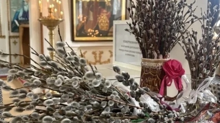 По окончании Литургии состоялось освящение воды и принесенных верующими верб.