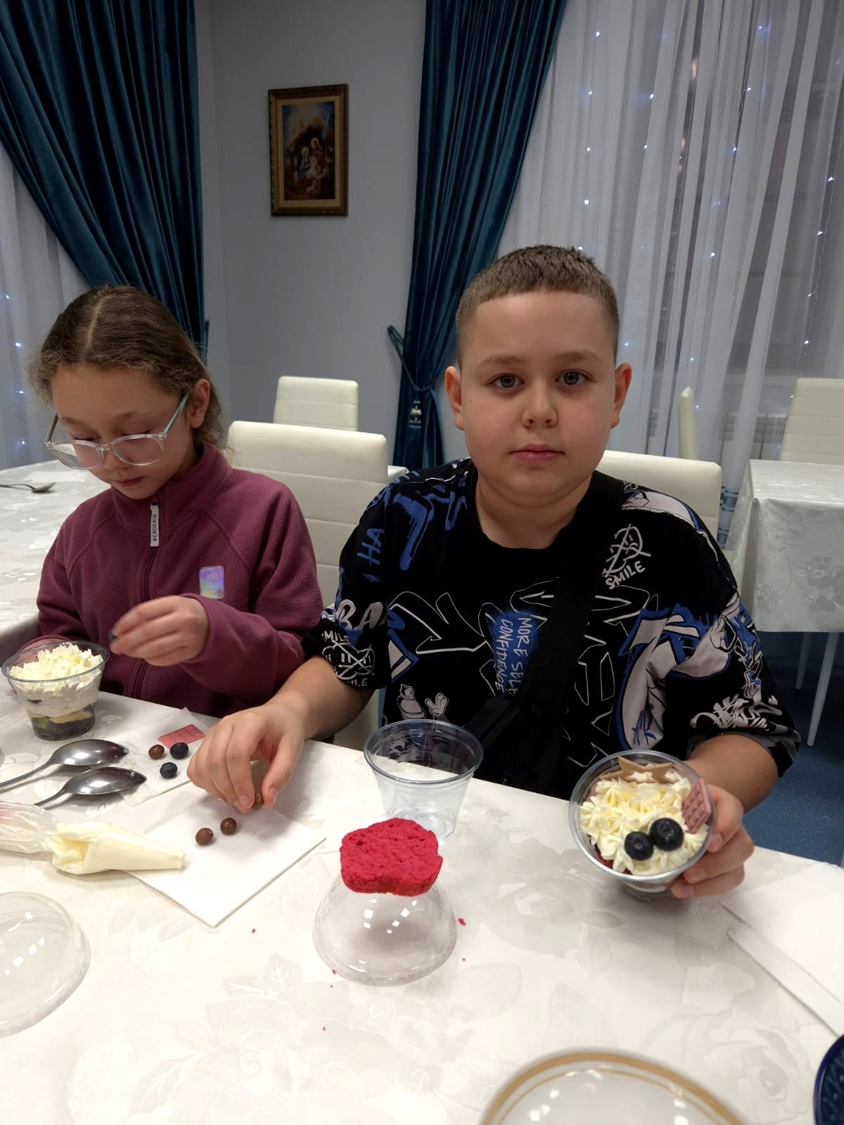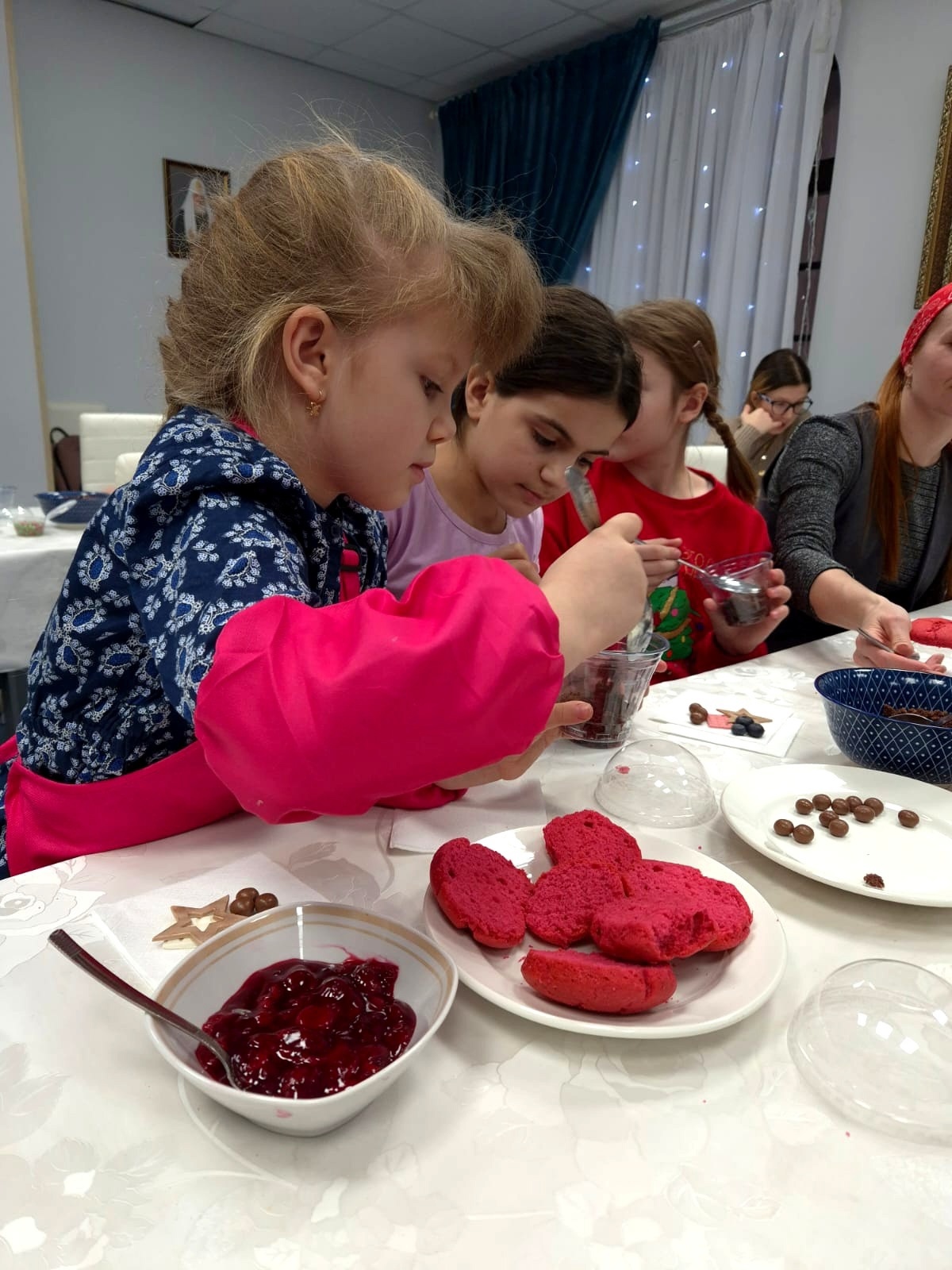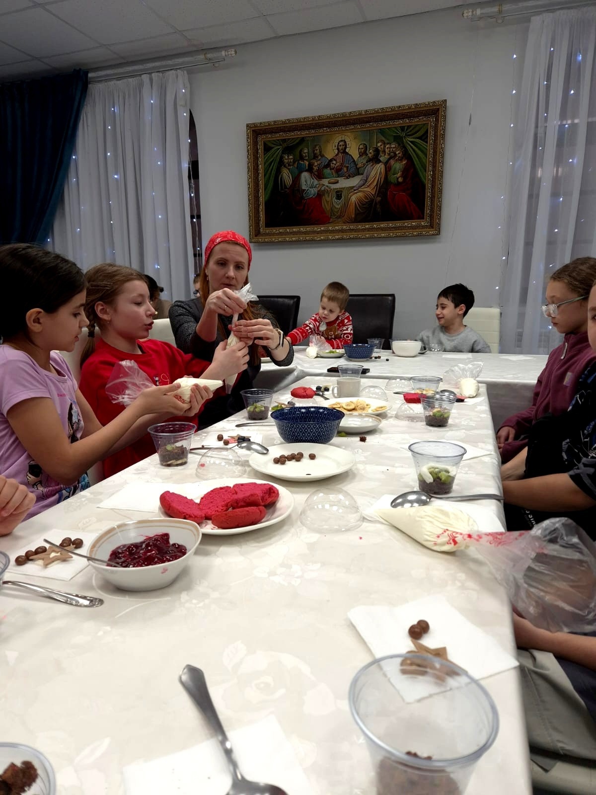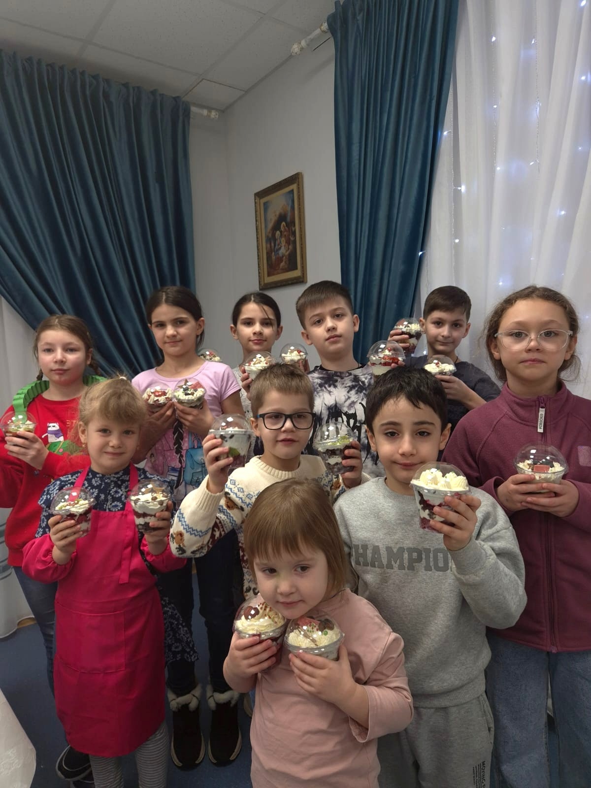 18 января в доме Причта храма святителя Тихона  пос. Нижнесортымский состоялся вкусный мастер класс по изготовлению десертов — трайфлов. Ребята делали два десерта на основе бисквитов красный бархат и шоколадный. Участники проявили творчество и придумали свои рецепты и сочетания, не упуская возможность продегустировать свои собственные шедевры. Скворцова Светлана Васильевна рассказала об истории рождественских десертов и познакомила с классической рецептурой трайфла, а Еремеева Наталья Филипповна помогала в подготовке компонентов. Рождественская музыка, изобилие фруктов и кондитерских топингов, искренний интерес детей и участие взрослых создали прекрасную святочную атмосферу.