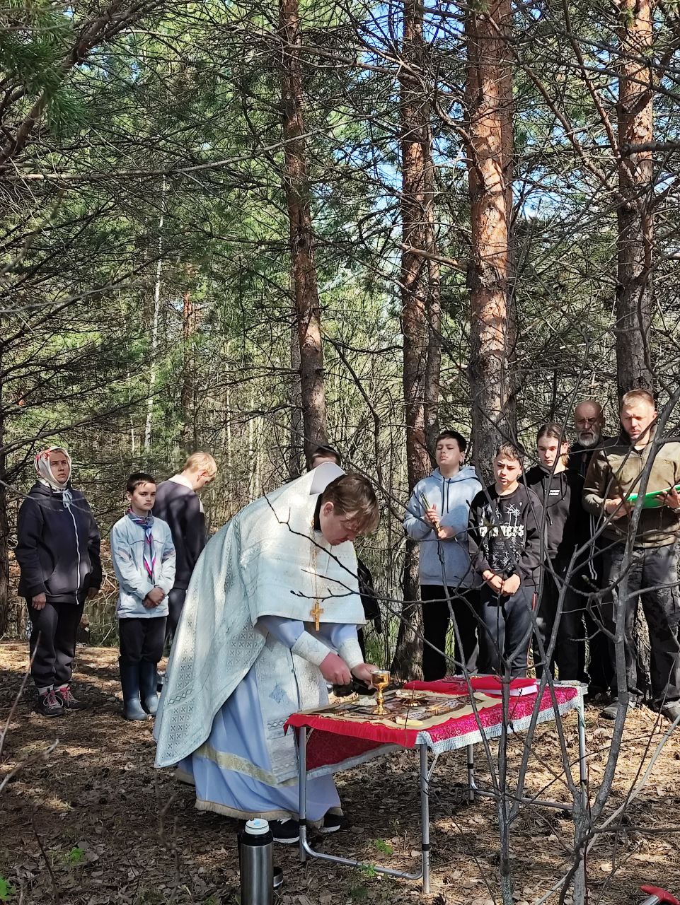 Среди участников был и духовник гимназии — священник Иоанн Казанцев, который не только сопровождал группу, но и совершил, по благословению митрополита Ханты-Мансийского и Сургутского Павла, миссионерскую Литургию под открытым небом.