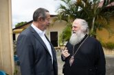 Но молитва не знает расстояний, и мы молились друг о друге. Я молился о всех вас, за всех священнослужителей со всей паствой, вы молились о своём архипастыре, и Господь услышал наши молитвы и привёл нас всех вместе сегодня. Я хотел бы поздравить отца Августина с принятием священного сана, это тоже частица нашей жизни, нашей епархии, что одним священнослужителем стало больше здесь, в Манильском благочинии. Я хотел бы в знак нашей встречи преподнести в дар нашему храму трёхсвечник к Пасхе и стихари для братии, которая будет возрастать и готовиться к дальнейшему духовному образованию. Я хотел бы особо поблагодарить отца Дэвида за его служение, за труды, которые он несёт здесь, на приходе много-много лет. Дай Бог здоровья Вам, чтобы Вы ещё долго жили и долго ещё служили здесь. Благодарю вас за труды, также рад видеть отца Филимона, который сегодня в нашей церкви. Я надеюсь, что наша епархия будет крепнуть количественно и качественно, укрепляться и приумножаться. Вопросов и проблем очень много, но я думаю, что с Божьей помощью будем потихонечку их решать. В Маниле сегодня нет храма, он ранее был разрушен, сейчас задача в том, чтобы приобрести землю и построить храм и наши представительства, не только здесь, но и в Давао и Генерал — Сантосе, и в других местах. Так что работы очень много, и я приглашаю всех неленностно трудиться в этом вопросе. Ещё раз всех благодарю за общие молитвы, за встречу!»