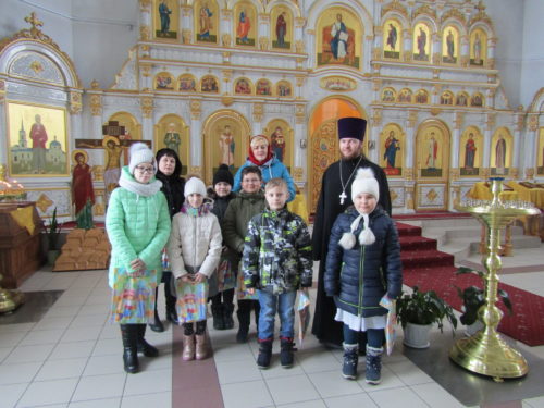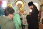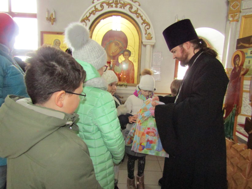 Клирик храма иерей Владимир Макаров рассказал ребятам об устройстве храма, ответил на вопросы и подарил наборы для творчества.