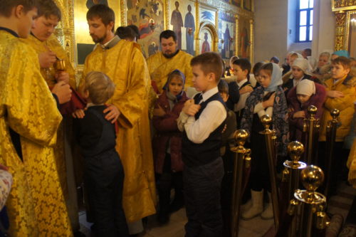 19 декабря воспитанники православной гимназии приняли участие в Божественной литургии в честь Святителя Николая Чудотворца, во время которой приобщились Святых Христовых Таин. Во время Богослужения мальчики старших классов помогали священнослужителям в алтаре, некоторые дети помогали следить за состоянием подсвечников. По окончании Божественной Литургии обучающиеся гимназии, выслушав проповедь протоиерея Сергия о Святителе Николае, приложились ко кресту и вкусили освященные просфоры.