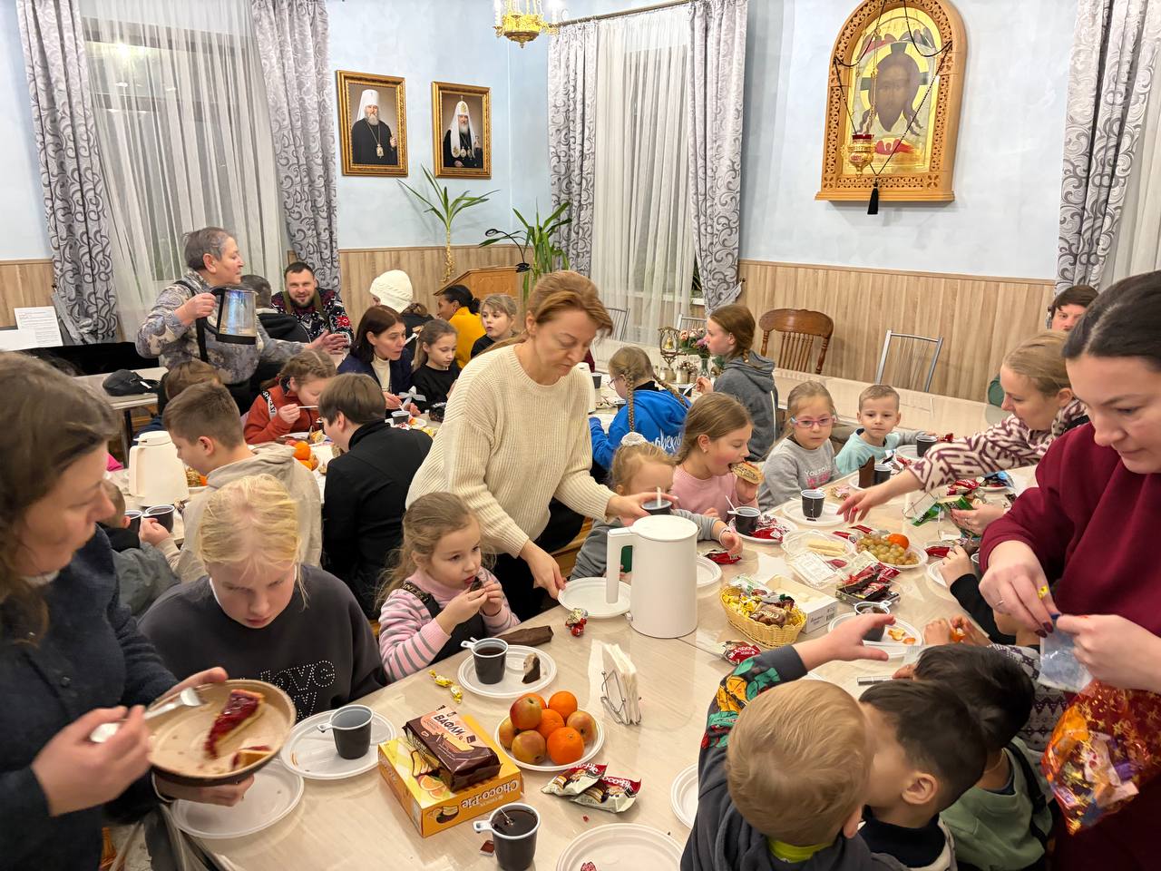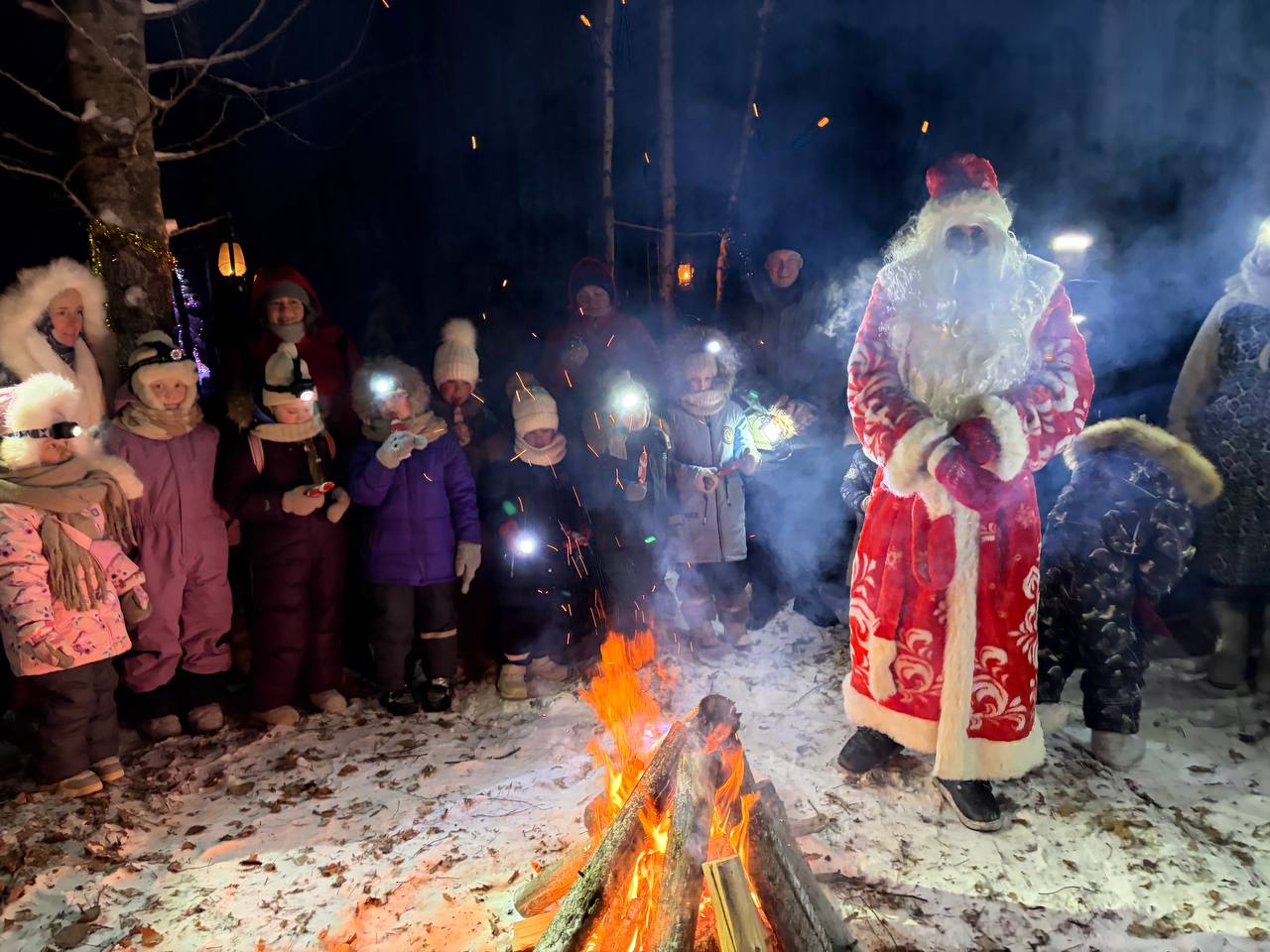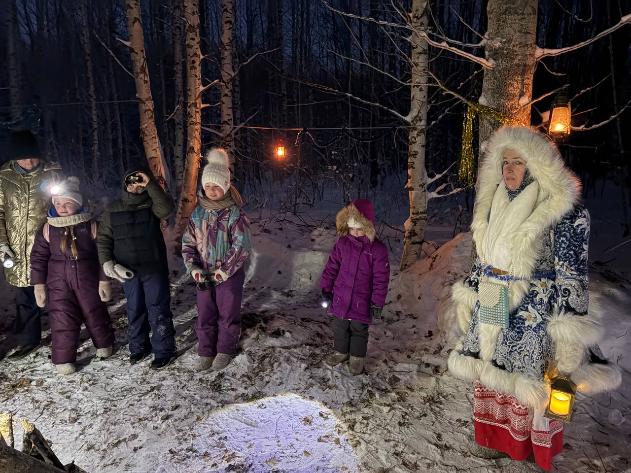 Также всех учеников воскресной школы и их родителей ждало увлекательное путешествие в Рождественский лес, дети со специальными фонариками прошли зимними тропами на зимнюю поляну. Где на лесной поляне дети встретили Деда Мороза, у костра ребята вспомнили Рождественские и Новогодние песни и конечно не обошлось без подарков, Дед Мороз подарил ребятам сладкие подарки. Завершилась зимняя прогулка.