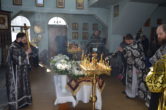 В конце вечерни, при пении тропаря «Благообразный Иосиф, с древа снем Пречистое Тело Твое», из алтаря на середину храма была перенесена Святая Плащаница с изображением погребения Христа.