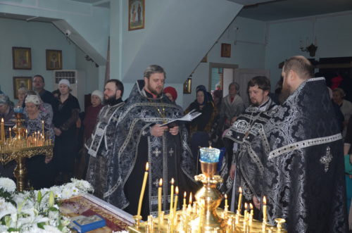 26 апреля 2019 года в Великую Пятницу Страстной седмицы настоятель Прихода иерей Леонид Бартков совершил вечерню с выносом Плащаницы Спасителя в храме в честь иконы Божией Матери «Знамение» г. Ханты-Мансийска. Его Преподобию сослужили клирики храма иерей Константин Мемячкин, иерей Тарасий Борозенец, иерей Андрей Зотов, диакон Александр Фокин.