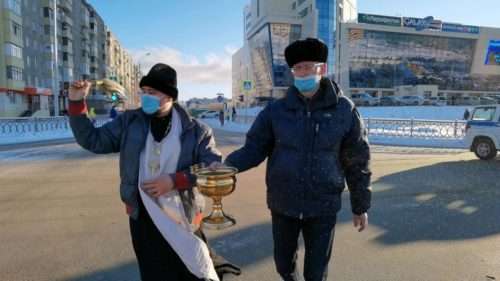 По окончании заупокойной литии иерей Алексей совершил освящение перекрестков, на которых совершается наибольшее количество дорожно-транспортных происшествий.