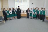 Хор Православной гимназии под руководством регента Белоусовой Светланы Сергеевны исполнил церковные песнопения (тропарь, кондак и величание), посвященные равноапостольным просветителям славян.