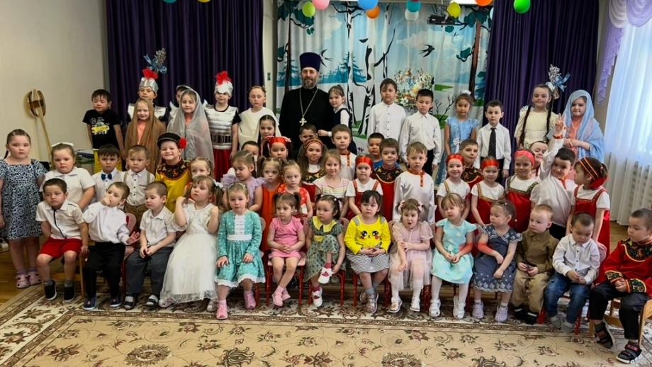 Встреча настоятеля храма Казанской Божией Матери с.Угут с воспитанниками детского сада «Медвежонок»