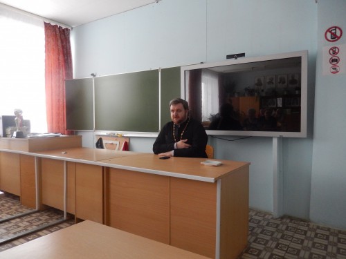 21 марта 2016 г. ключарь храма в честь Покрова Пресвятой Богородицы г. Ханты-Мансийска, настоятель Прихода храма в честь Сошествия Святого Духа п. Красноленинский Ханты-Мансийского района, иерей Андрей Зотов провел плановую встречу с педагогическим составом Средней общеобразовательной школы п. Красноленинский. Тема встречи: «Религиозный (православный) компонент в содержании образования».