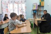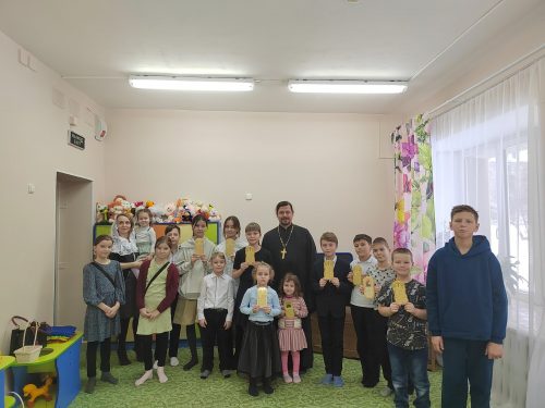 Воспитанники воскресной школы знают, как важно приобщиться к Таинствам церкви, поэтому Исповедь и Причастие стали верными спутниками ребят. С опытом появляются и новые вопросы, которые нуждаются в ответе опытного, мудрого наставника. Именно поэтому гостем на одном из занятий стал настоятель храма отец Димитрий. С трепетом и уважением, с нескрываемым интересом ребята общались с батюшкой и внимали каждому его слову. Со всей серьёзностью дети восприняли беседу, задавая очень важные и нужные вопросы. Так, вместе с настоятелем ребята вспомнили, как нужно готовиться к Исповеди, какое правило читать и как его выбирать. Отрадно было слушать, как наши юные христиане рассуждали о грехах и запретах, как без единого сожаления выбирали для себя путь поста и молитвы. Это не только привычные многим ограничения в еде, дети сделали акцент и на действиях, что могут влиять на их души: лень, игры, мультфильмы и другие, ежедневные, но не совсем полезные вещи.