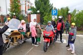 По окончании службы ребят и взрослых ждал самый настоящий сюрприз, который подготовила педагог Воскресной школы Алена Владимировна Голендухина. Одним из ее разносторонних увлечений является интеграция в мотосообщество байекеров, пропогандирующих своим примером поездки на двухколесном «железном коне» безопасность дорожного движения. Команда пойковских байкеров прибыла к территории храма, где каждый желающий мог разглядеть их мотоциклы, посидеть на кожаном седле, покрутить ручку газа, чтобы раздался громкий рычащий звук, полюбоваться экипировкой самих пилотов. Алена Владимировна интересно рассказала о местном клубе байкеров, для чего нужна экипировка водителю мотоцикла и почему нужно соблюдать правила дорожного движения. Эта встреча оставила незабываемый отклик, как у ребят православного лагеря, так и у ребят-байкеров.