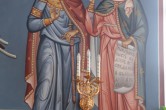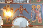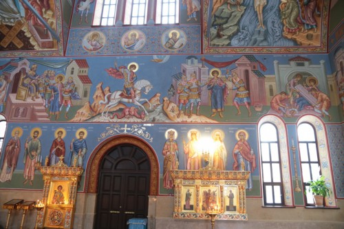 В храме святого великомученика Георгия Победоносца завершился основной этап росписи храма. За прошедшее время были расписаны алтарная и центральная части. В самом храме осталось расписать купол, трапезную часть и притвор.
