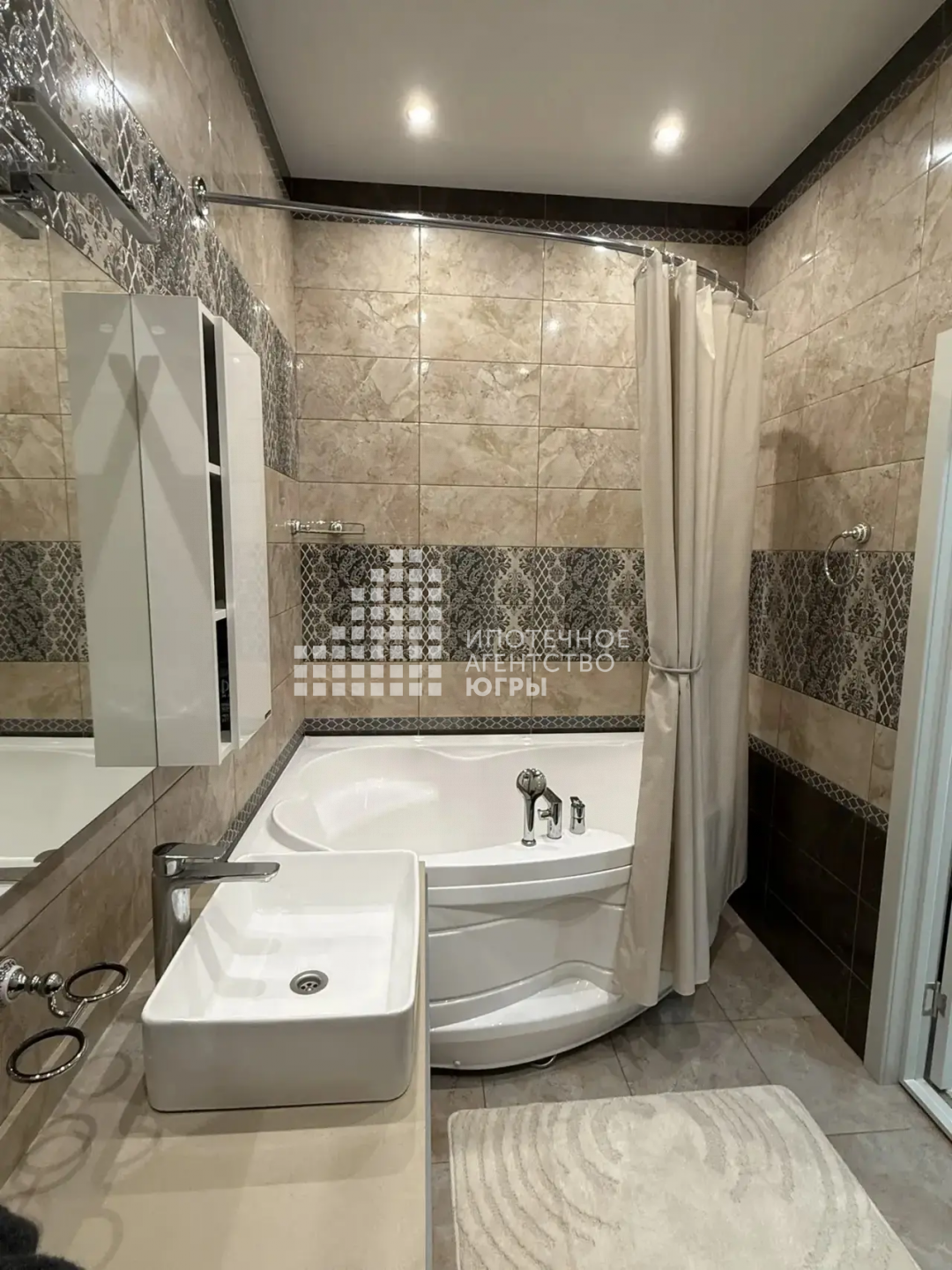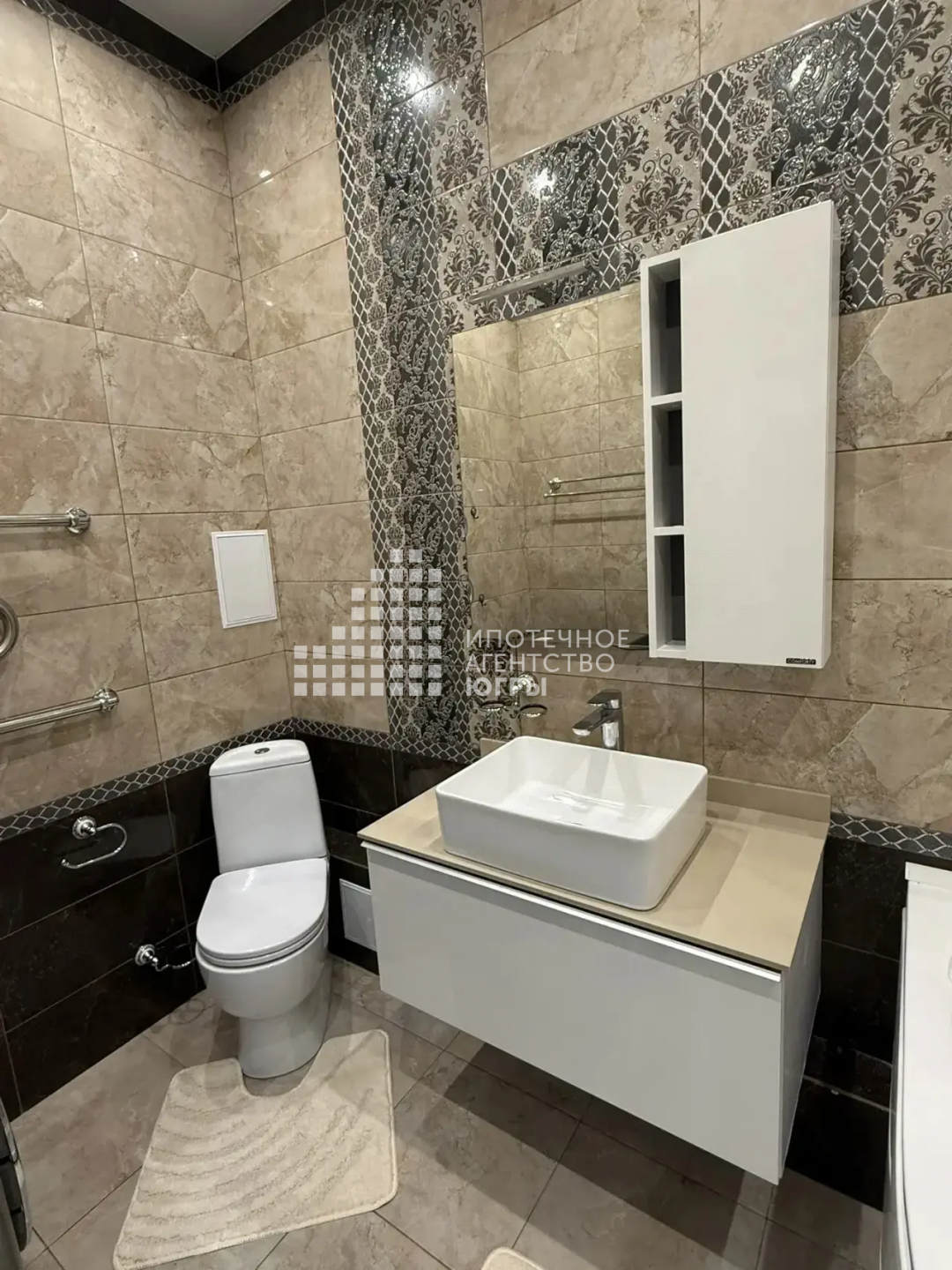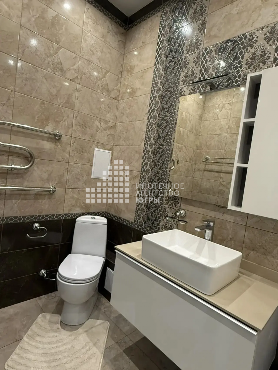 Уютная ванная комната с современными сантехническими приборами и плиткой премиум качества, создающая атмосферу спа.