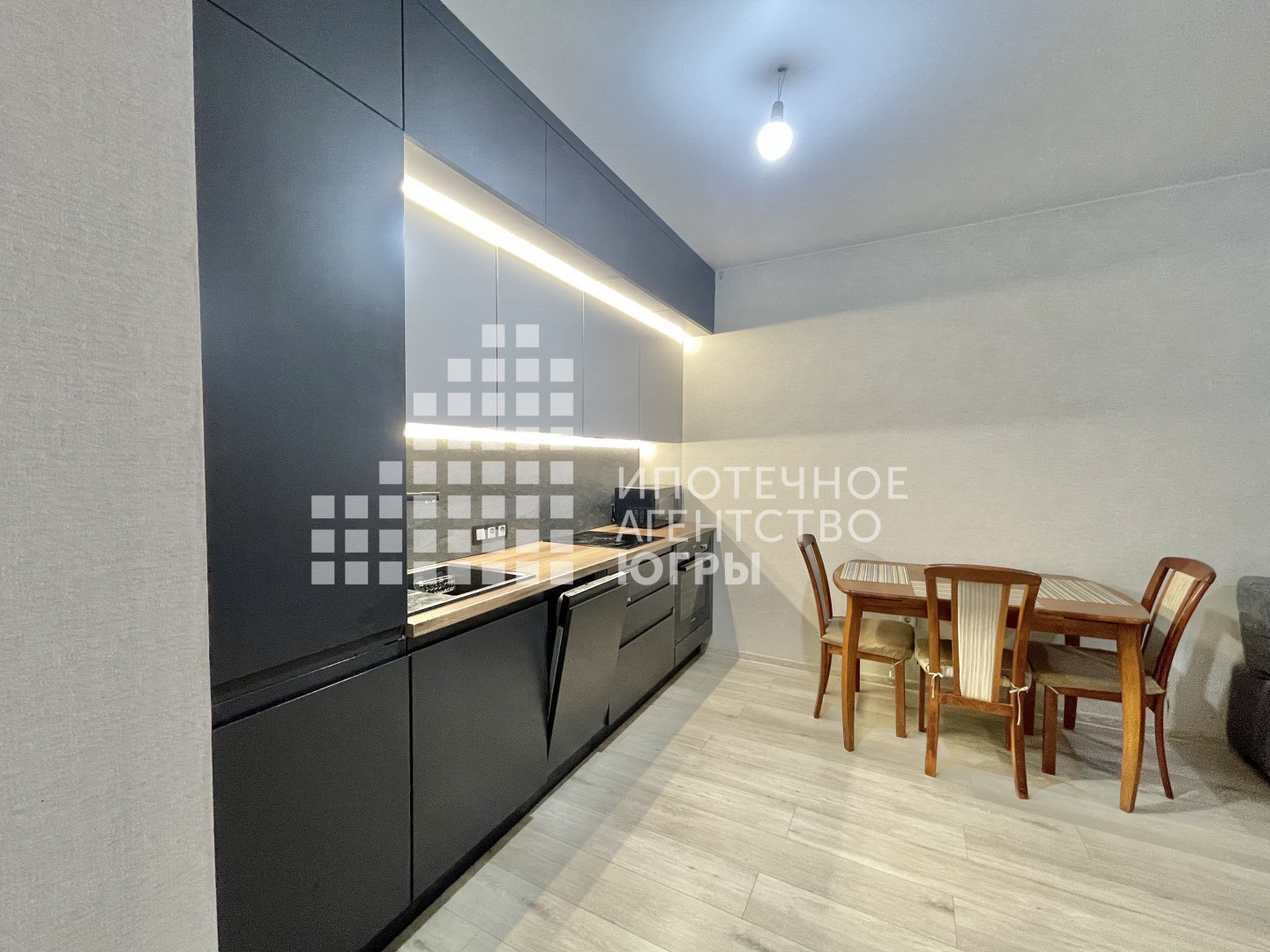 Кухня-гocтиная это то место, где проводят время всей семьёй. Здесь готовят, принимают пищу и отдыхают на удобном диване. Кухня оснащена современным кухонным гарнитуром и всей необходимой встроенной техникой (посудомойка, духовка, холодильник). Имеется выход на застеклённую лоджию.