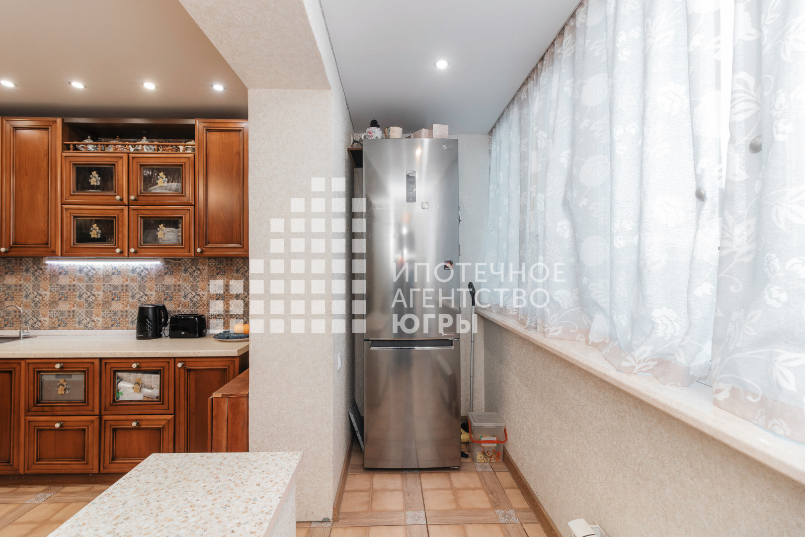 Планировка характеризуется кухней - 16,6 кв.м., площадь которой позволяет свободно разместиться за обеденным столом, а также организовать дополнительное место под хранение