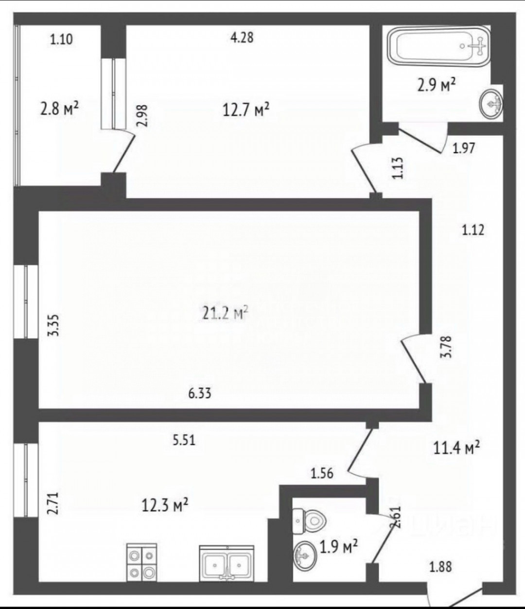 12.3 м2