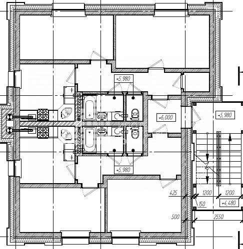 Монолитный каркас с заполнением стен блоками. Внутренние стены из кирпича — гарантия прочности и тишины.